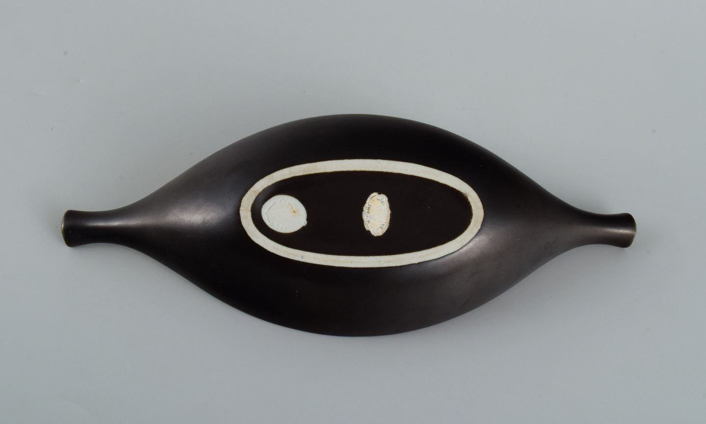 Stig Lindberg for Gustavsberg. ”Pungo” keramikskål i sort glasur. 1960erne. I perfekt stand. Mål: L 26,5 x D 10,0 x H 4,0 cm.