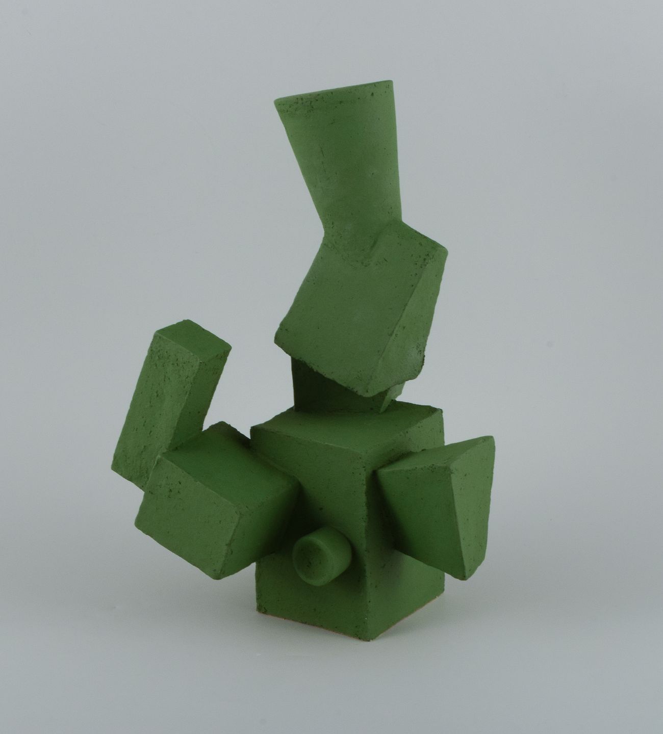 Unique cubist stoneware sculpture in matte grass green glaze.