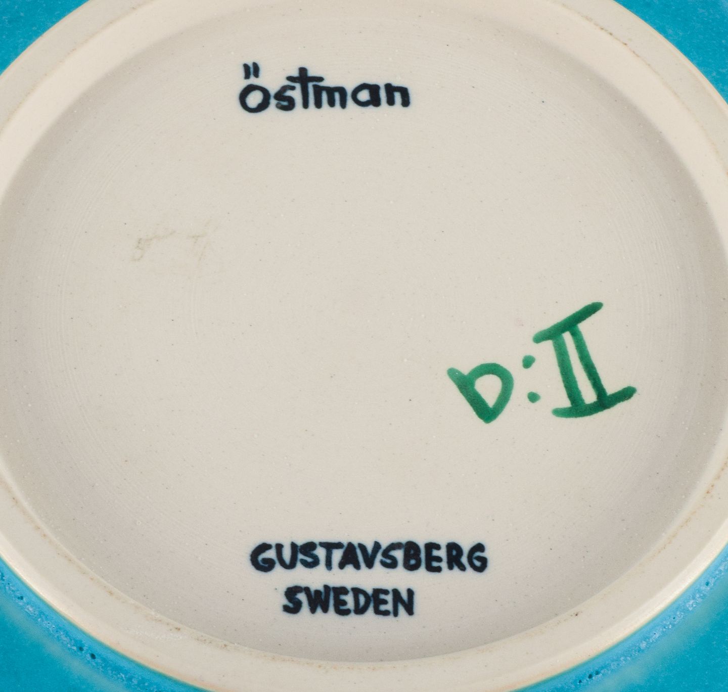 Lasse Östman for Gustavsberg, glaseret stentøjs skål i turkis. I flot stand. Signeret. Sent 1900-tallet. Mål: D 22,5 x H 6,5 cm.