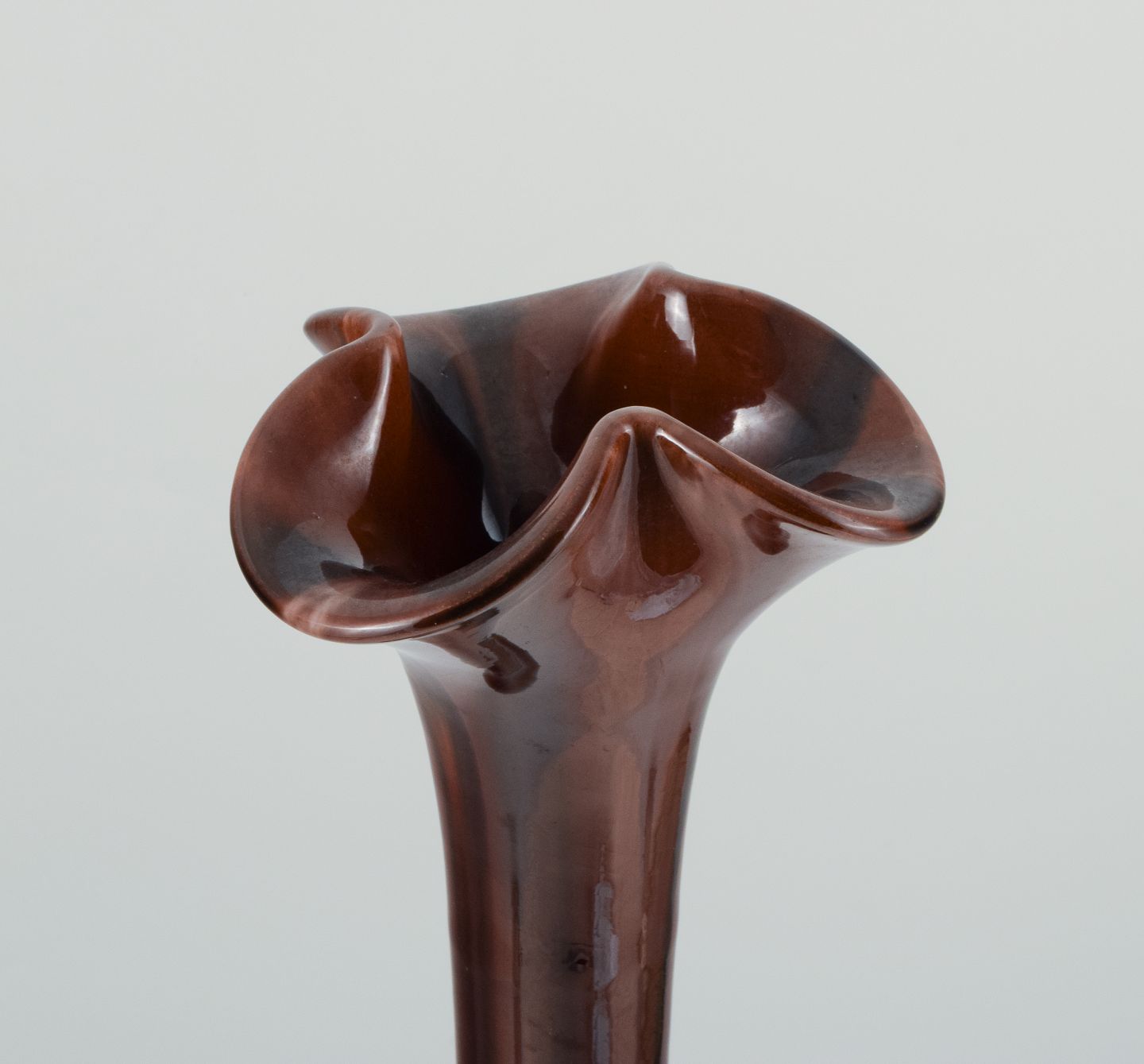 Jerome Massier (1850-1916), Vallauris, kolossal fransk vase i keramik med glasur i brune nuancer. Tidligt 1900-tallet. I perfekt stand. Måler: H 54,0 x D 11,0 cm. Stemplet.