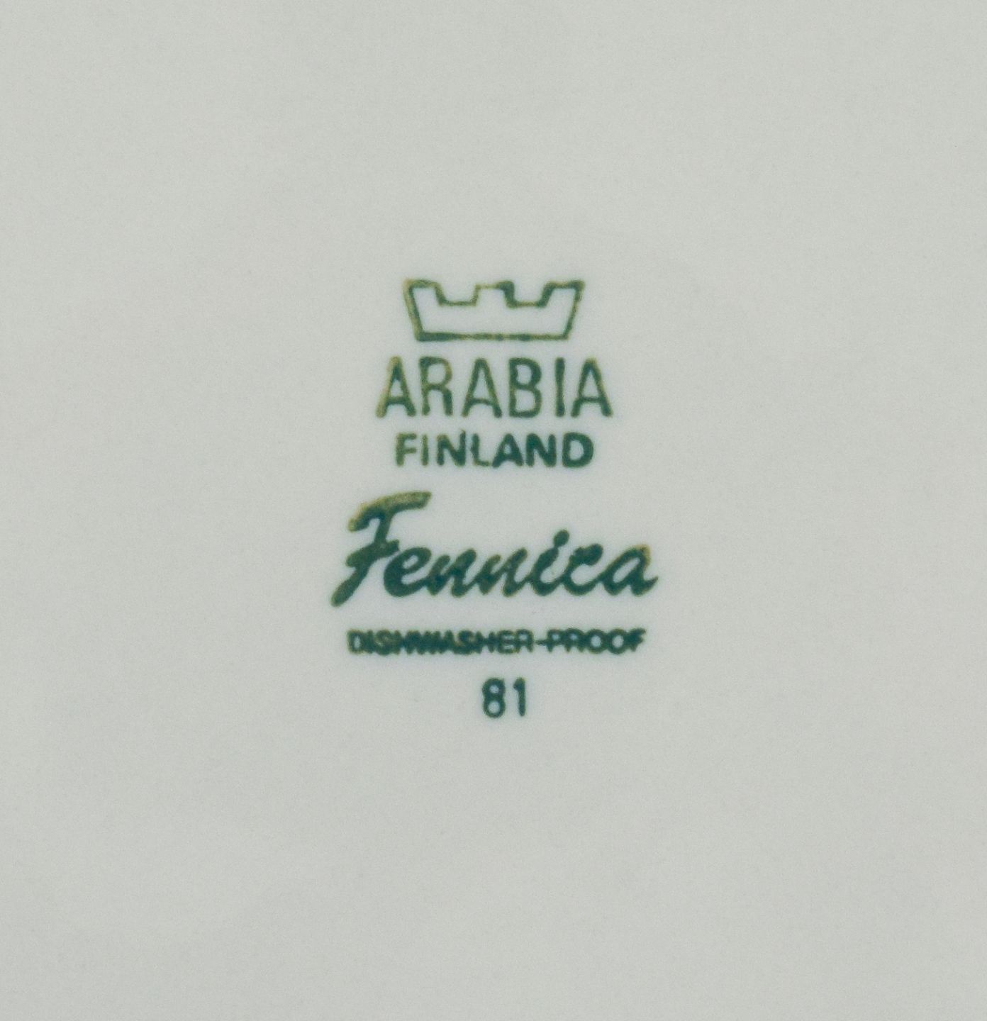 Arabia, Finland. Seks Fennica middagstallerkner i stentøj.