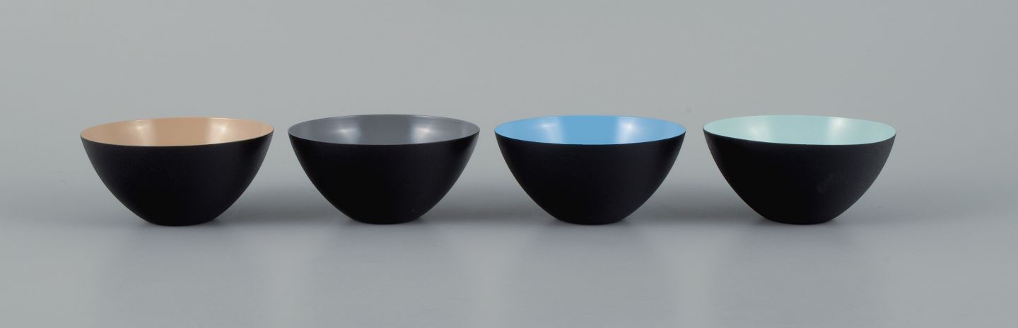 Fire små krenitskåle i metal. Brun, grå, blå og mintgrøn. Design af Hermann Krenchel. 2000-tallet. I perfekt stand. Signeret ”Normann Copenhagen” Mål: D 8,5 x H 4,0 cm.