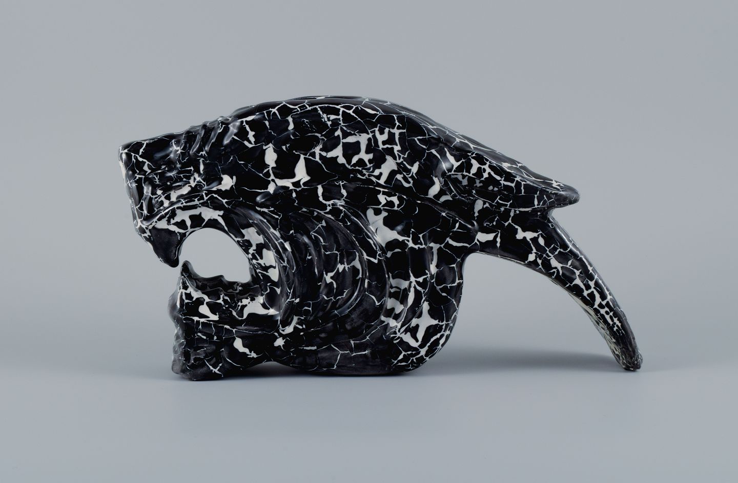 Roger Guerin (1896-1954), unika skulptur i sortglaseret keramik i form af kattedyr.
