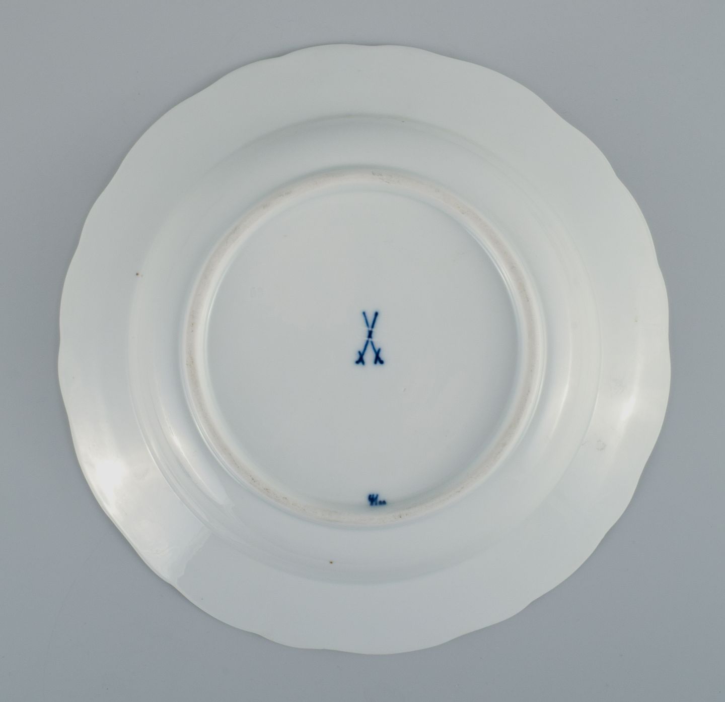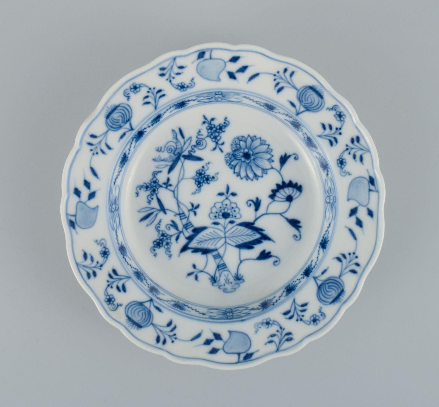Meissen, et sæt på tre dybe tallerkner, håndmalet, løgmønstret.