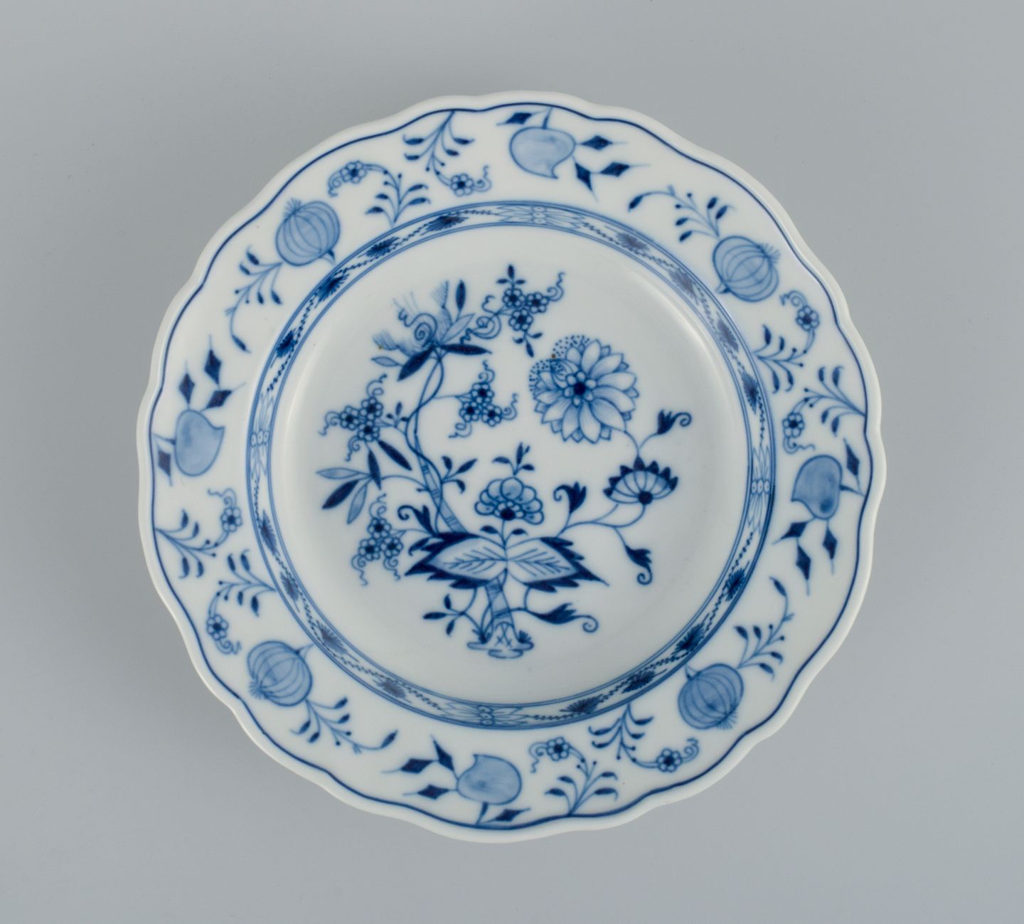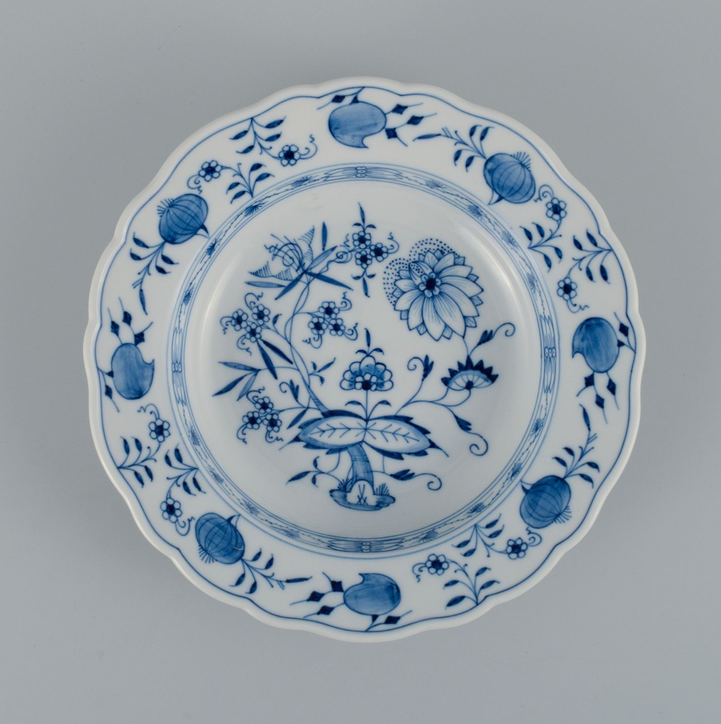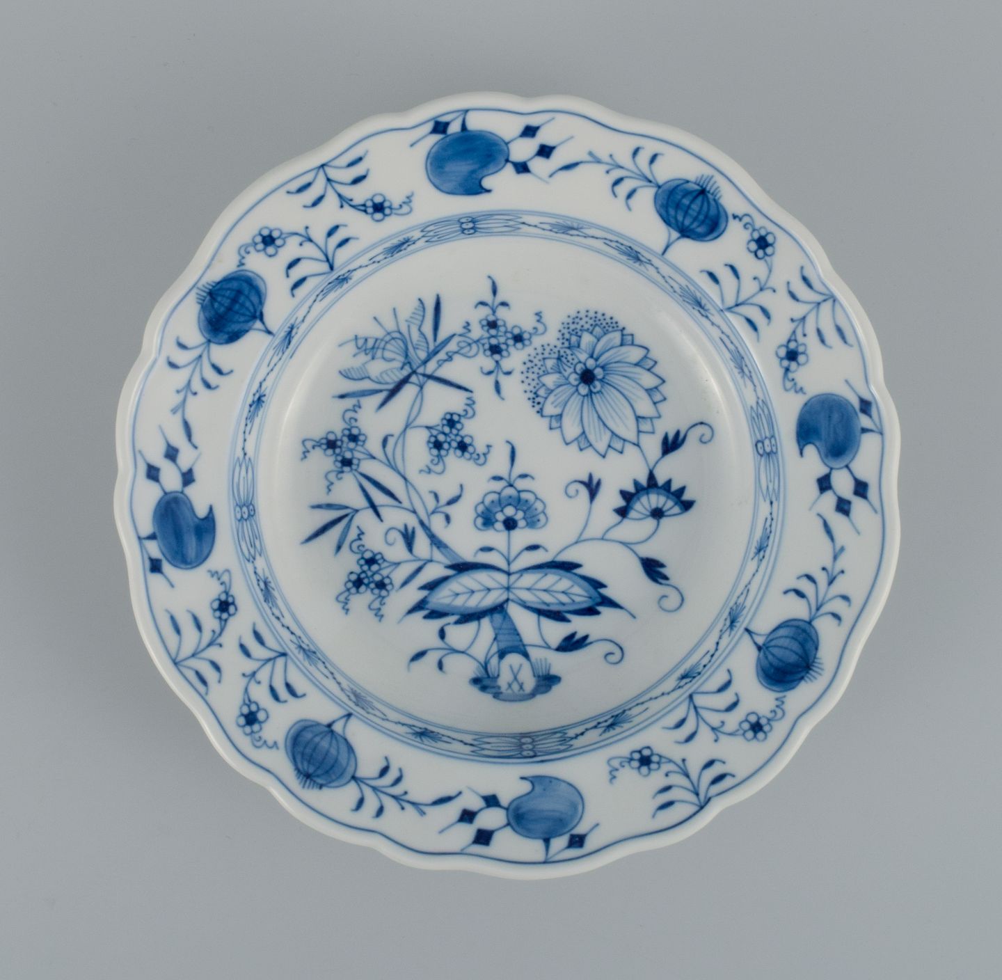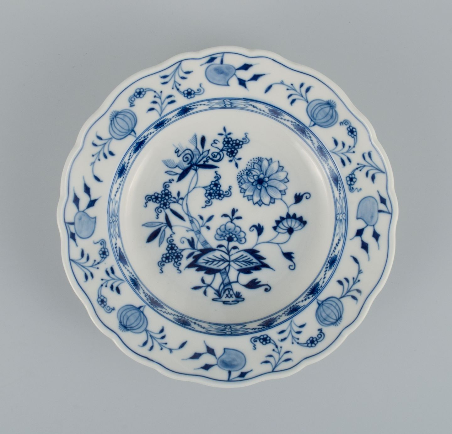 Meissen, a set of four deep plates, hand painted, Blue Onion. Late 19th century. In perfect condition. First factory quality. Marked Dimensions: D 23.4 x H 5.0 cm.