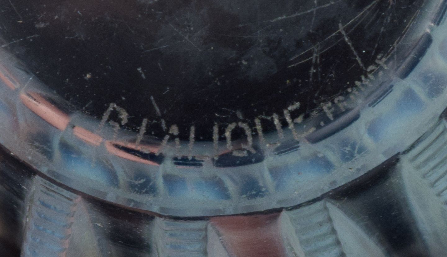René Lalique. Tidlig kunstglasvase ”Chamonix”. Modelnummer 1090. 1933. I perfekt stand. Signeret R. Lalique. Mål: H 15,0 x D 13,5 cm.