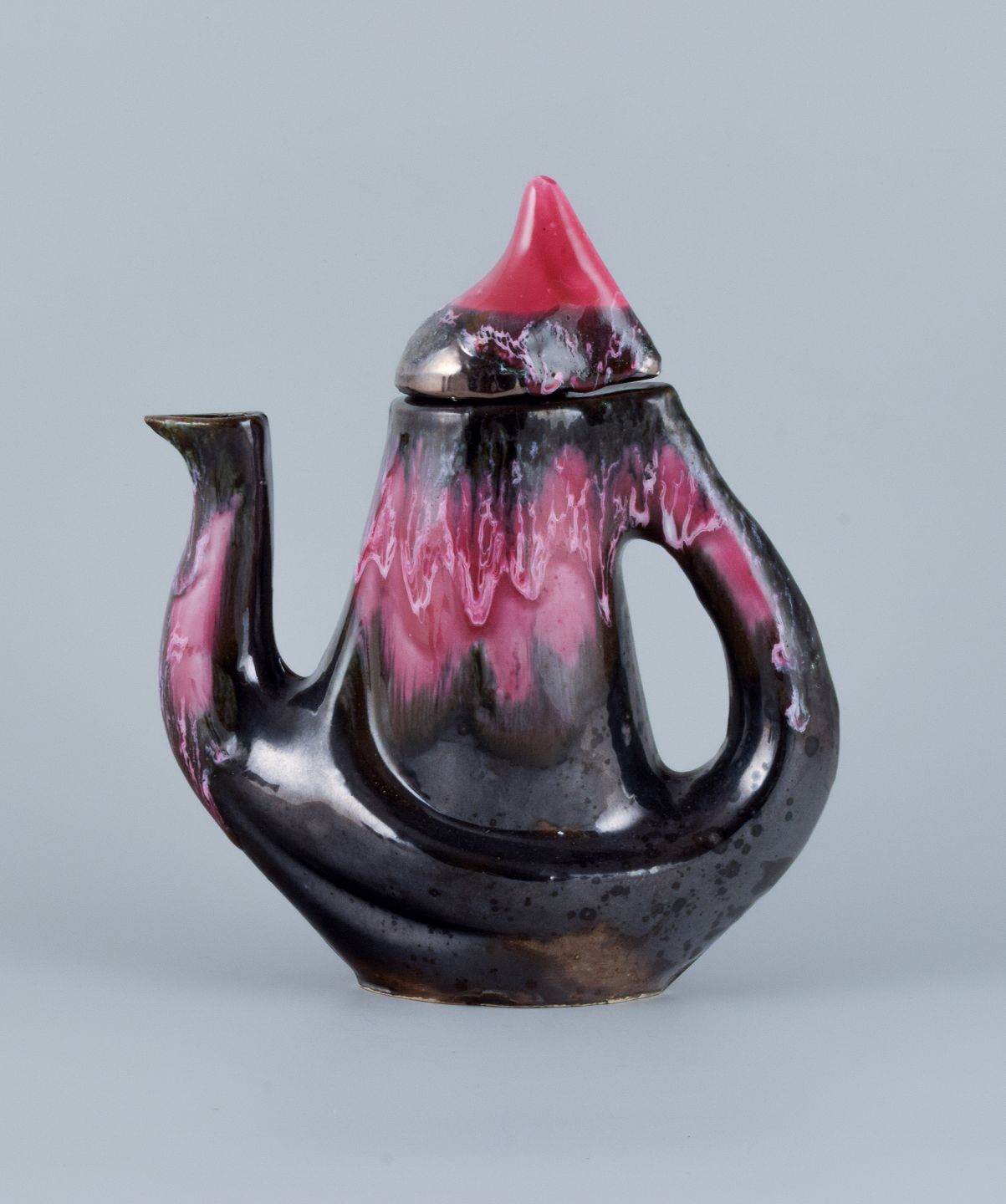 Vallauris, Frankrig, kaffekande, lågskål og et kaffekrus. Lystreglasur.