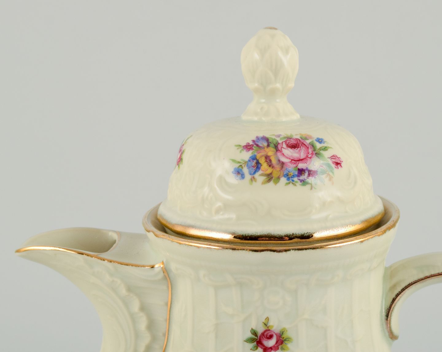 Rosenthal, Germany. "Sanssouci" Coffee pot, sugar bowl and creamer decorated with flowers and gold.