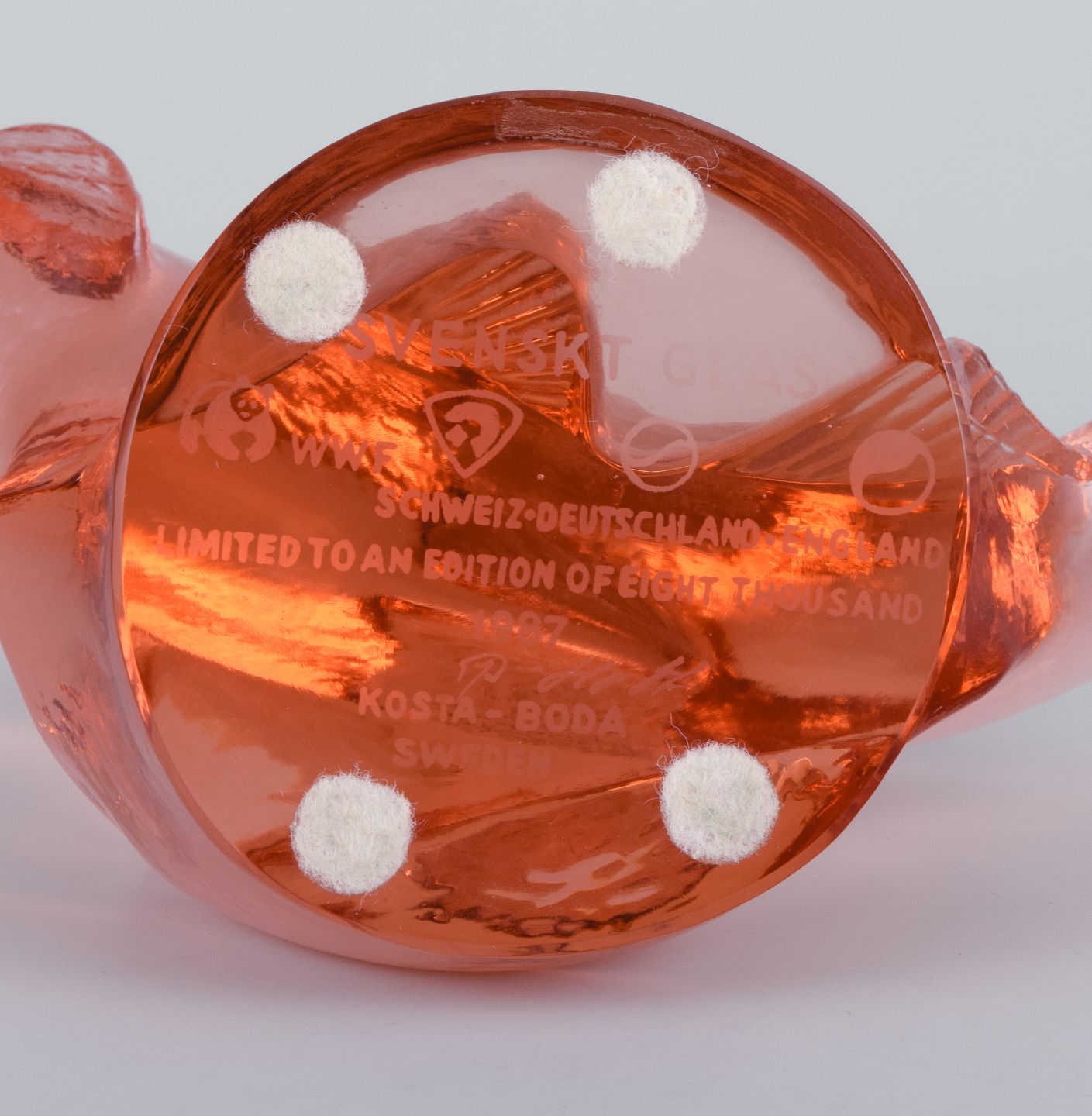 Paul Hoff for Swedish Glass / Kosta Boda. Large fish in salmon colored art glass. 1987. In perfect condition. Marked. WWF - Ltd. Edition Dimensions: L 17.5 x H 10.0 cm.