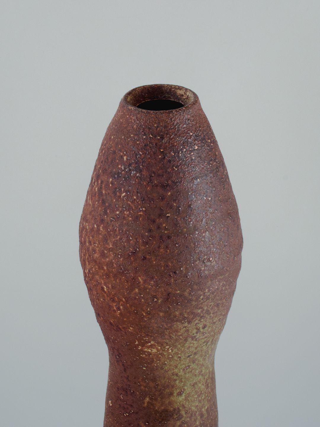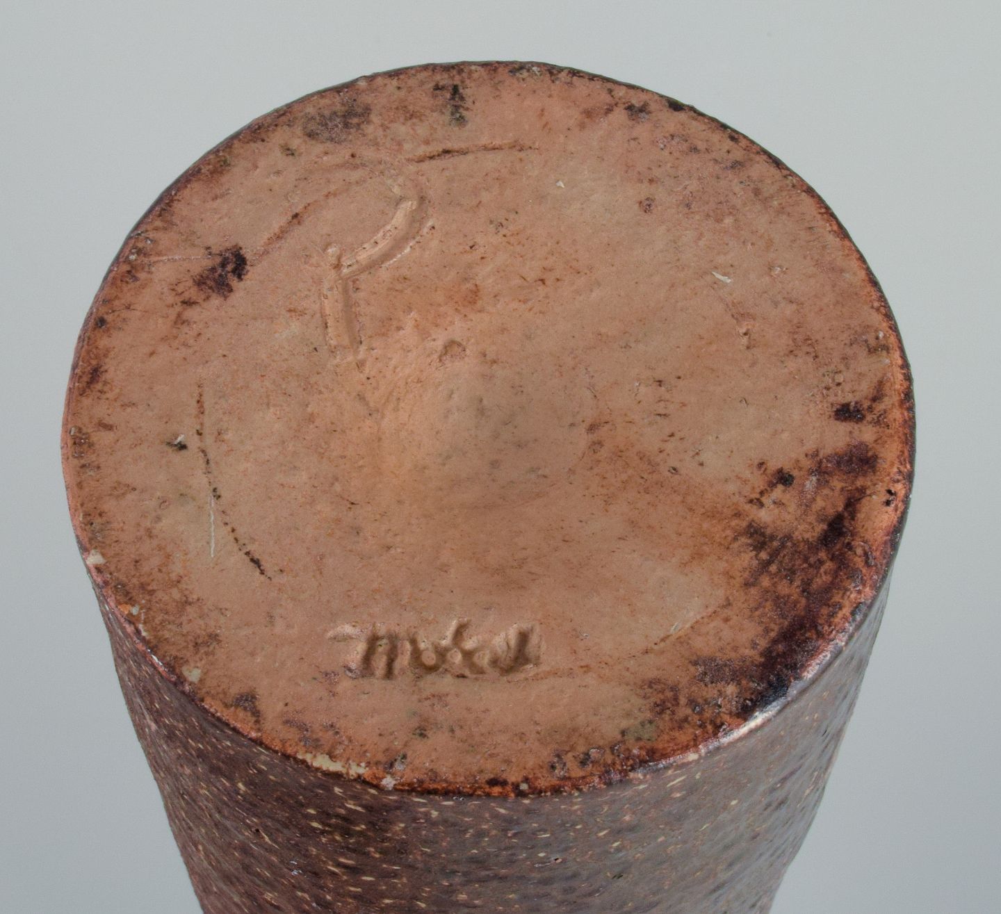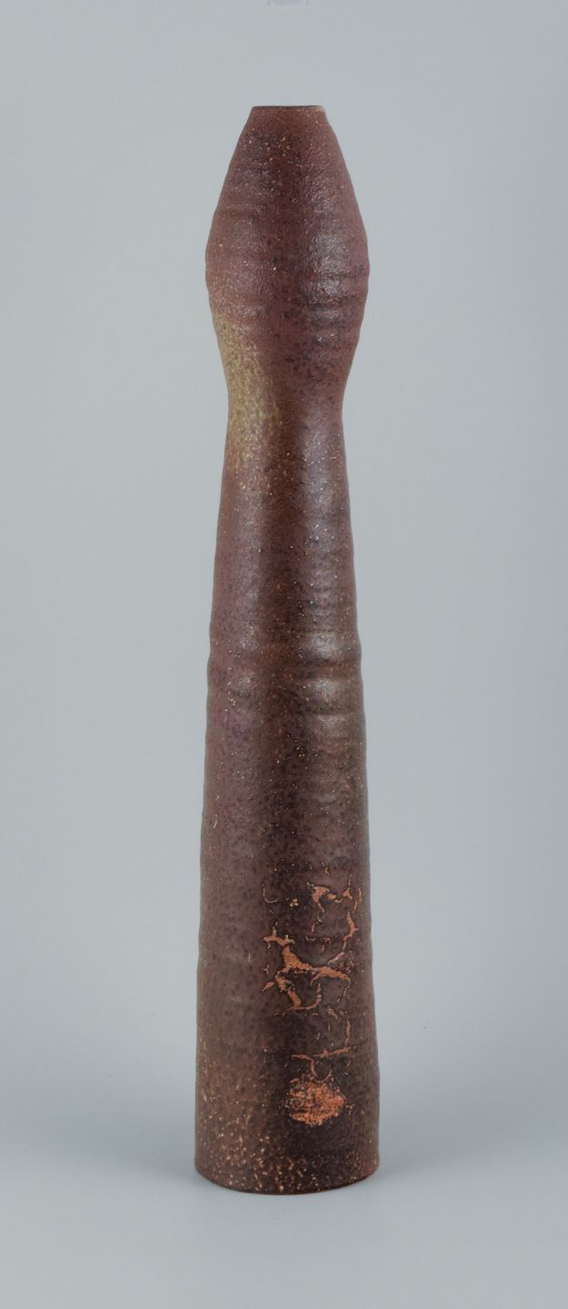 Mobach, Holland, stor unika keramikvase. Høj og slank vase i brune nuancer. 1960/70’erne. I perfekt stand. Stemplet. Mobach samt utydelig kunstnersignatur. Mål: H 56.0 x D 10.0 cm.