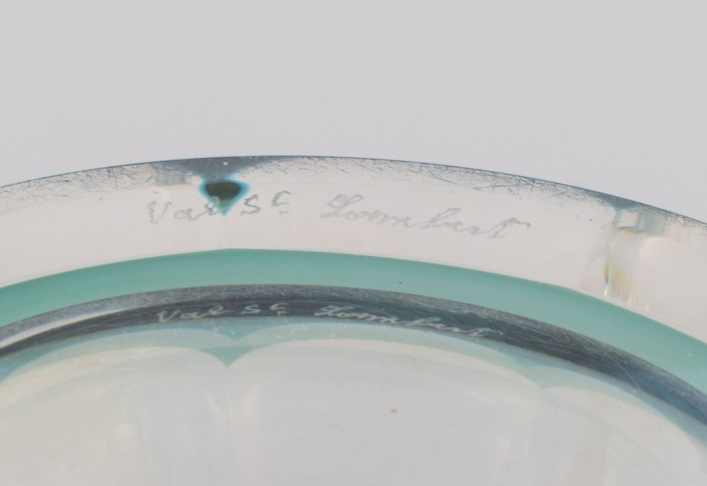 Val St. Lambert, Belgien, stor håndlavet Art Deco krystalglas-vase, facetslebet med grøn dekoration. 1930/40’erne. Perfekt stand. Signeret. Mål: H 26,0 x D 13,0 cm.