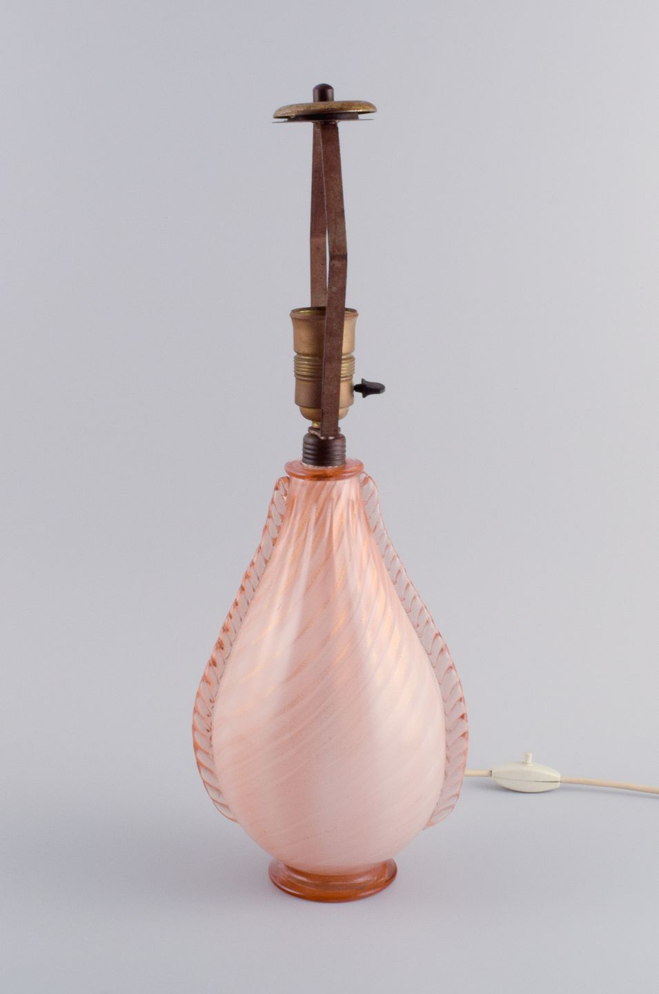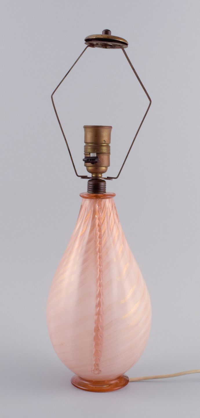 Barovier og Toso, Murano. Stor bordlampe i lyserød mundblæst kunstglas. Klassisk italiensk design.