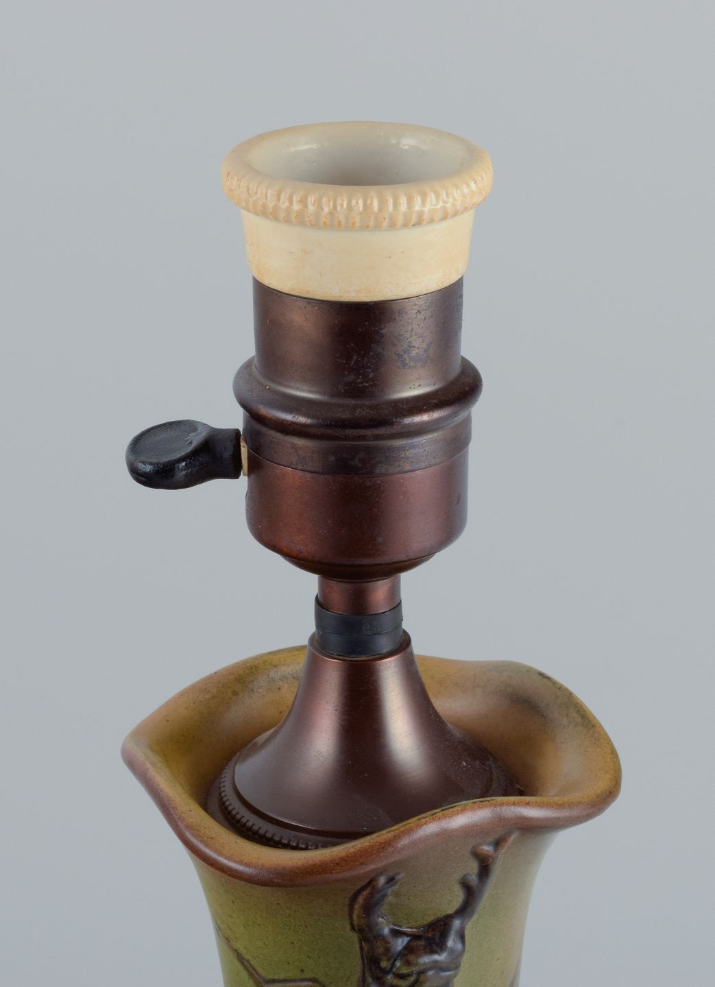 Ipsens Enke, sjælden bordlampe med øgle og bille. 1920/30'erne. I flot stand. Stemplet. Mål: D 14,0 x H 36,0 cm.