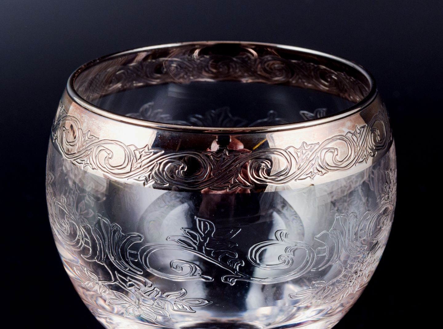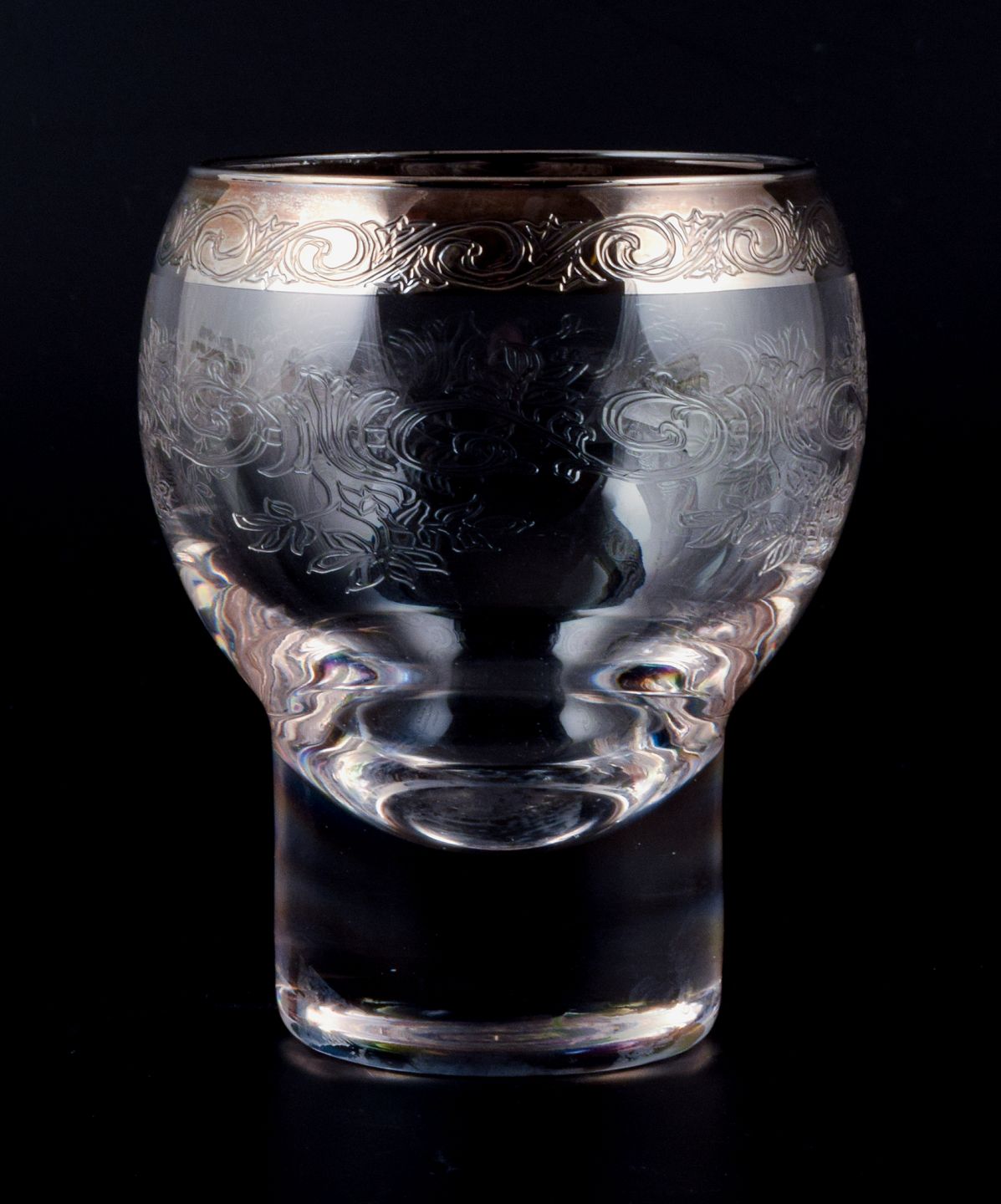 Murano, Italien, seks mundblæste og graverede ølglas med sølvkant. Midt 1900-tallet. I perfekt stand. Mål: H 10,0 x 8,0 cm.