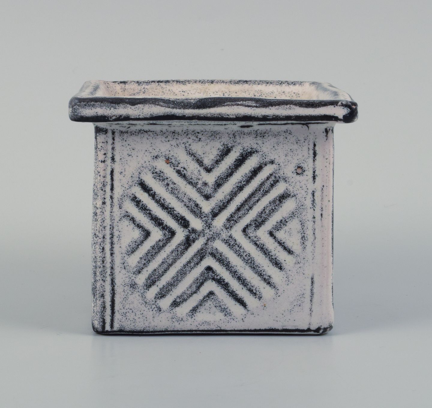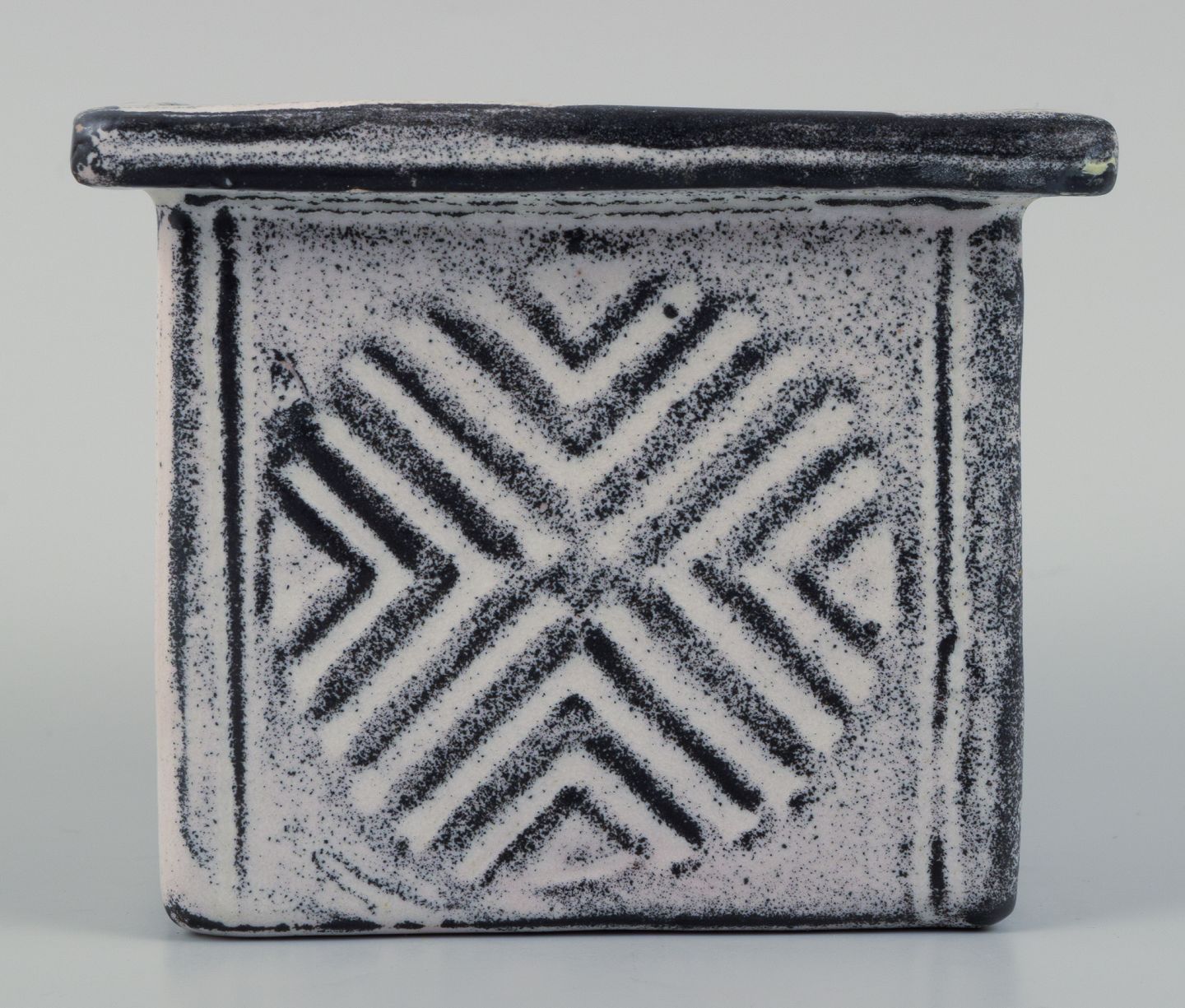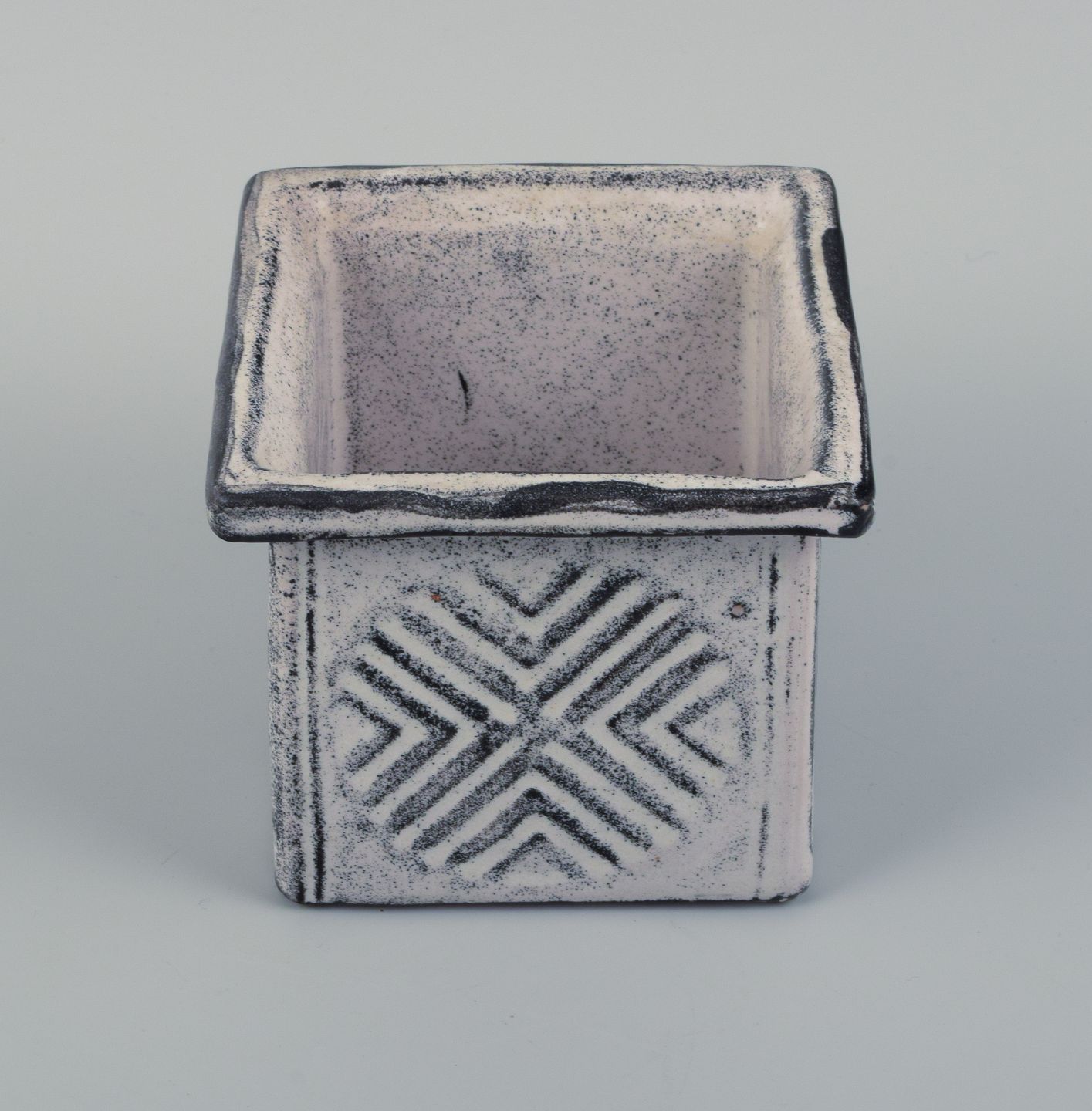 Nils Kähler for Kähler. Kvadratisk vase i glaseret stentøj. Smuk gråsort dobbeltglasur. 1930/40'erne. Signeret. Perfekt stand. Mål: D 9,3 x H 7,7 cm.