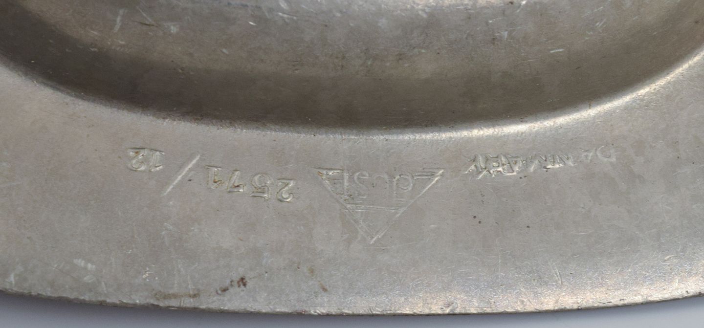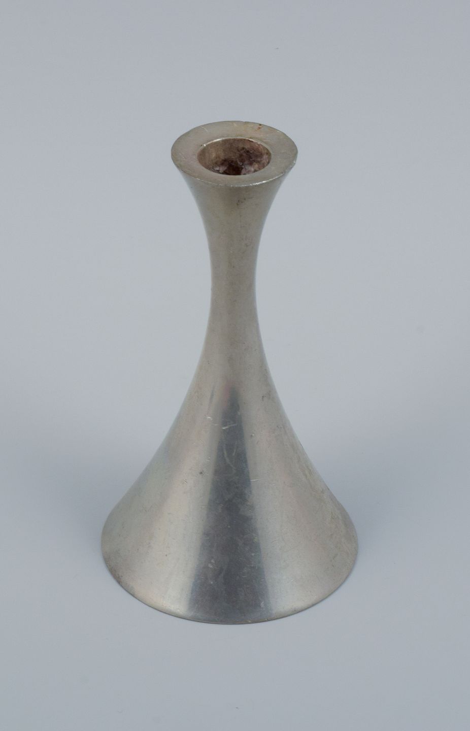 Just Andersen, Danmark. Lysestage og lille skål i tin. 1940’erne. I god stand med brugspræg. Stemplet. Lysestage: H 14,8 x D 8,2 cm.