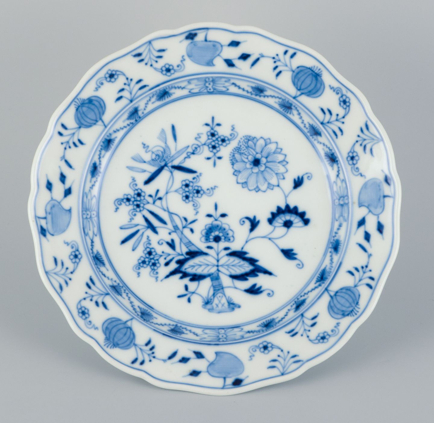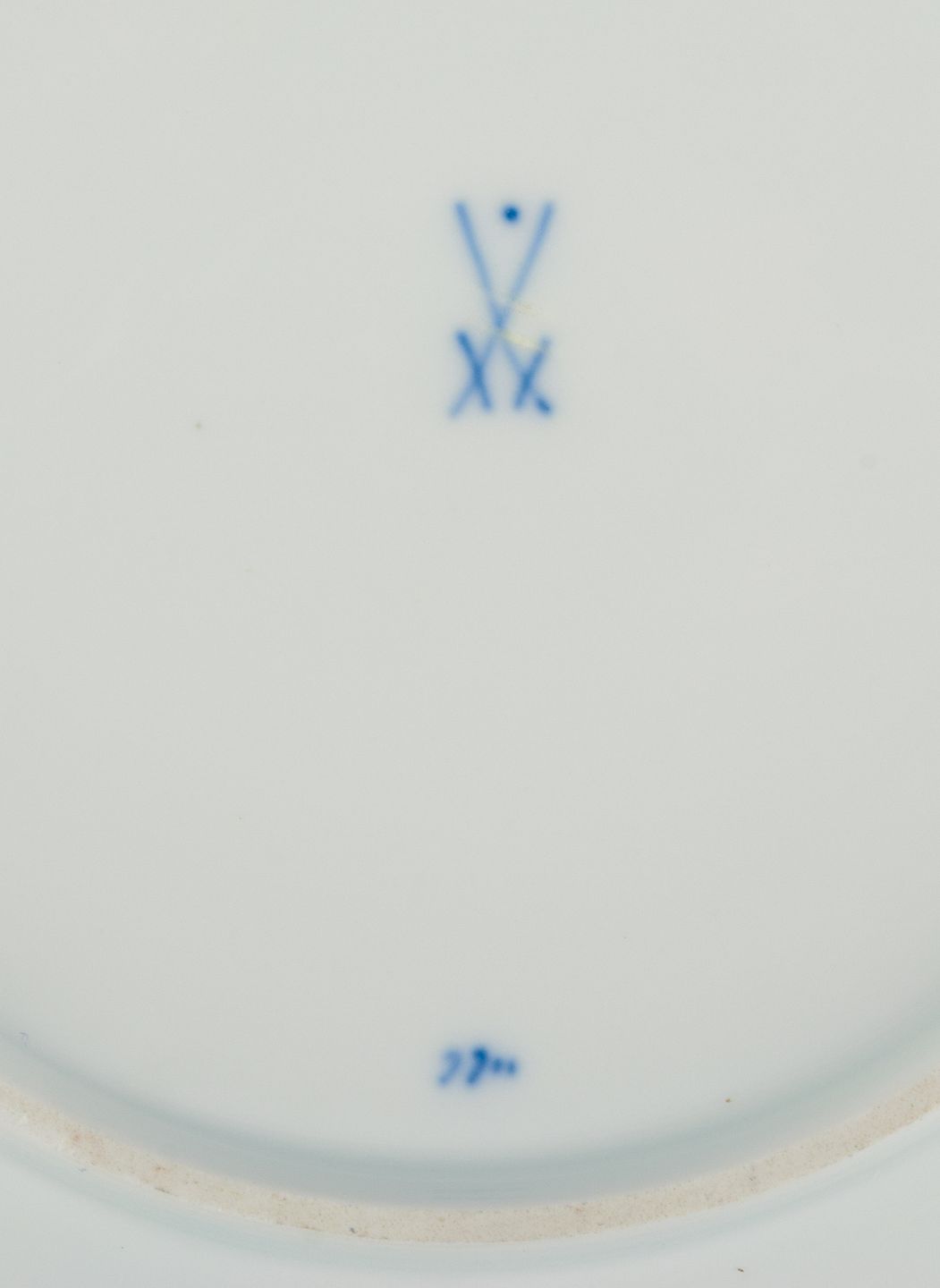 Meissen, Tyskland, løgmønstret, et sæt på tre håndmalet middagstallerkner. Tidligt 1900-tallet. Stemplet. I perfekt stand. Tredje sortering. Mål: D 24,5 x H 3,5 cm.