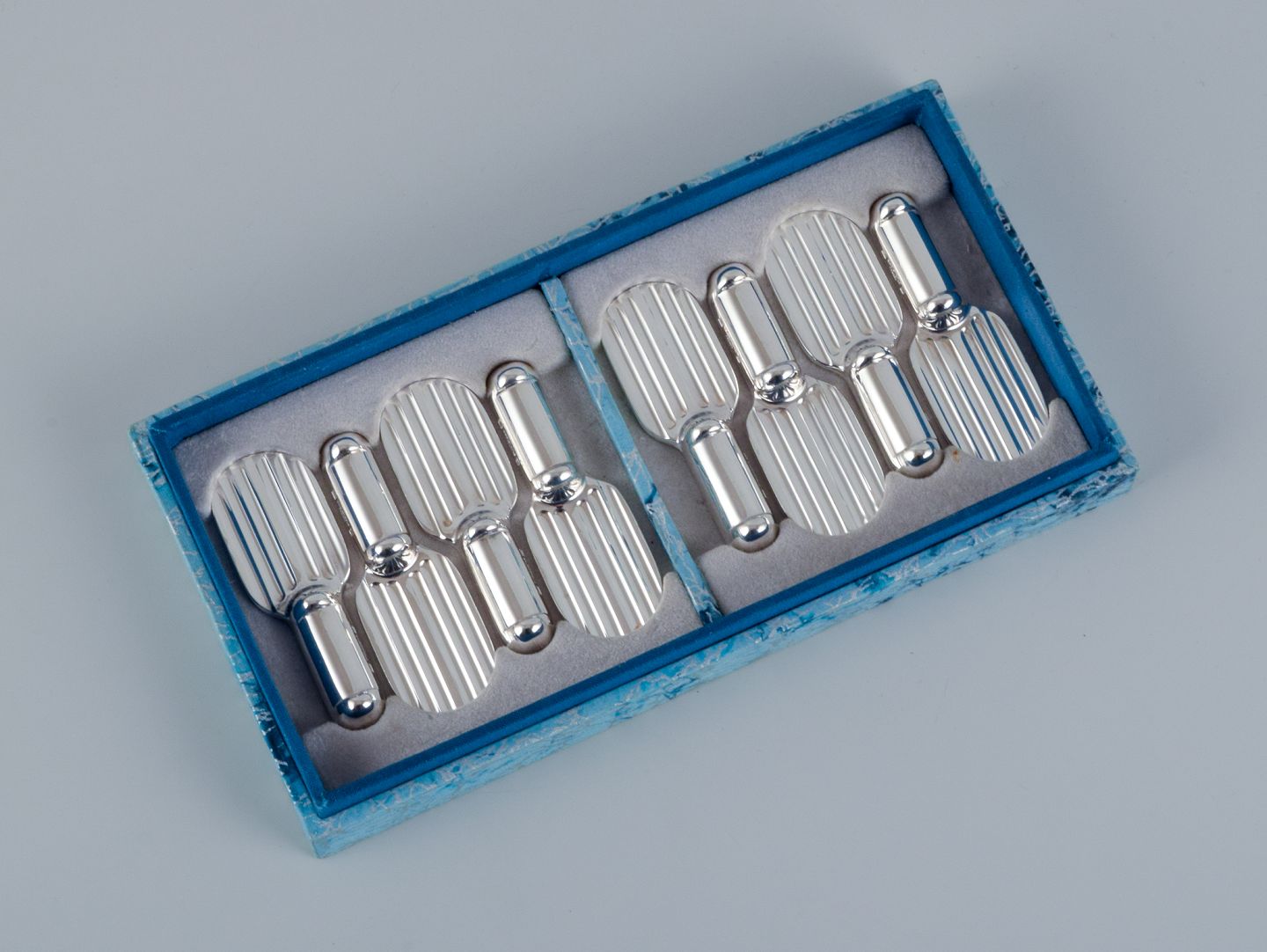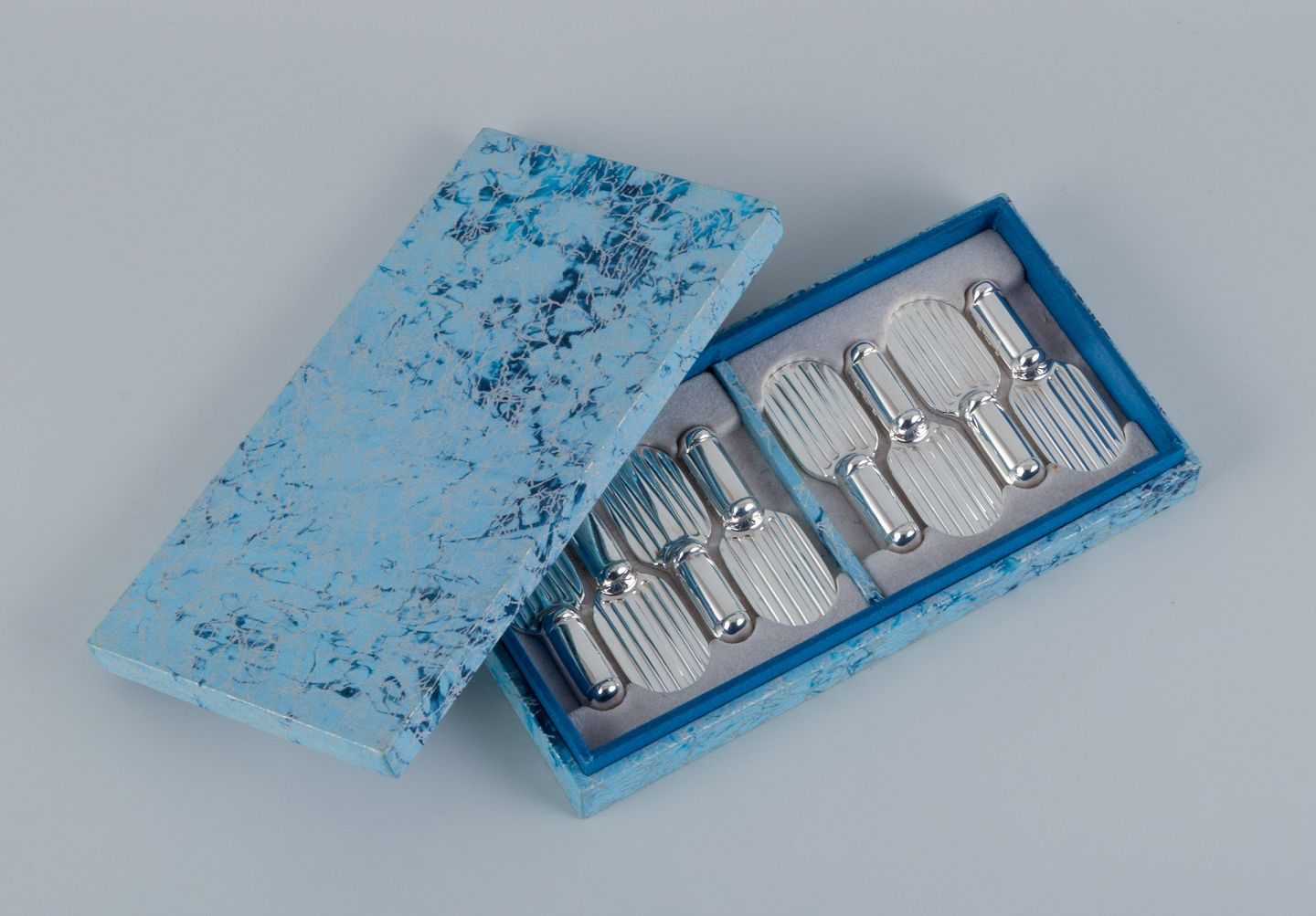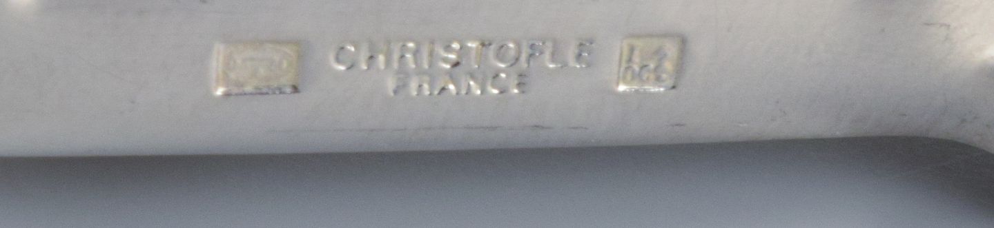 Luc Lanel for Christofle, Frankrig. Et sæt på otte Art Deco sølvbelagte knivstole.