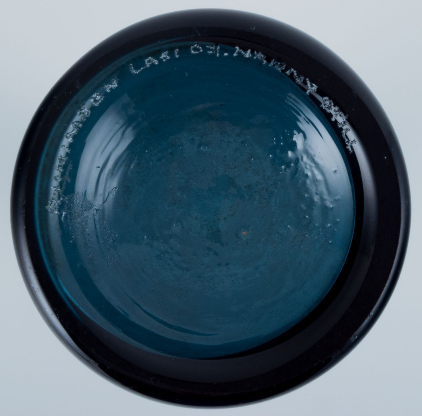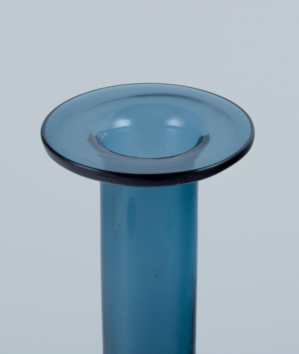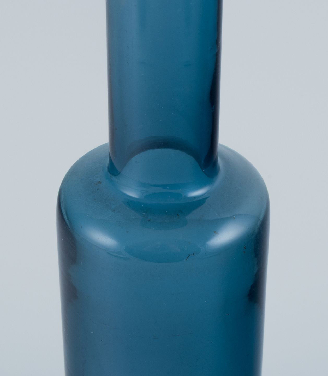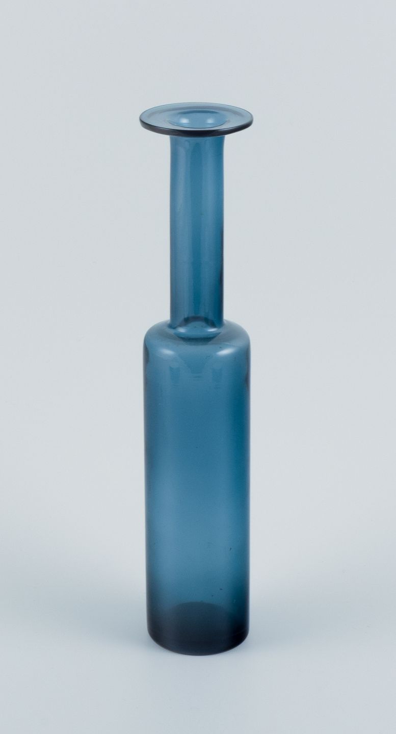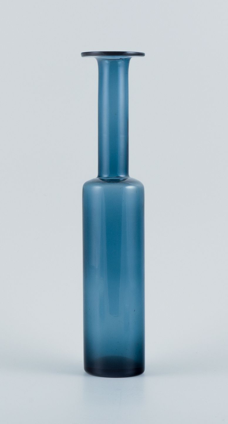 Nanny Still for Riihimäen Lasi, finsk glaskunst, dekorationsflaske/vase. Smuk petroleumsblå. 1960/70´erne. Signeret. Perfekt stand. Mål: H 31,0 x D 7,0 cm.