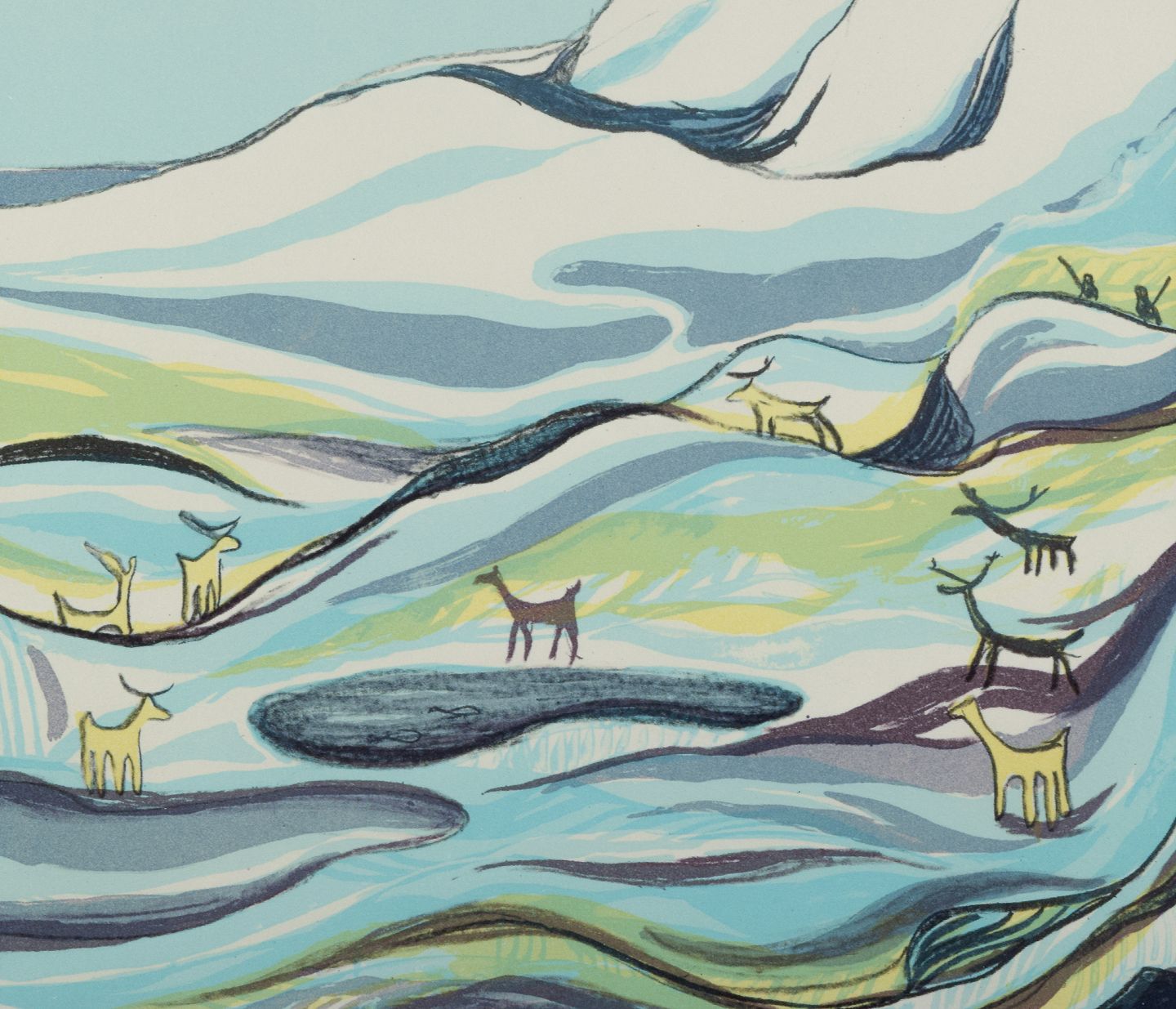 Aka Høegh, Grønlandsk kunstmaler. Farvelitografi på papir.