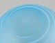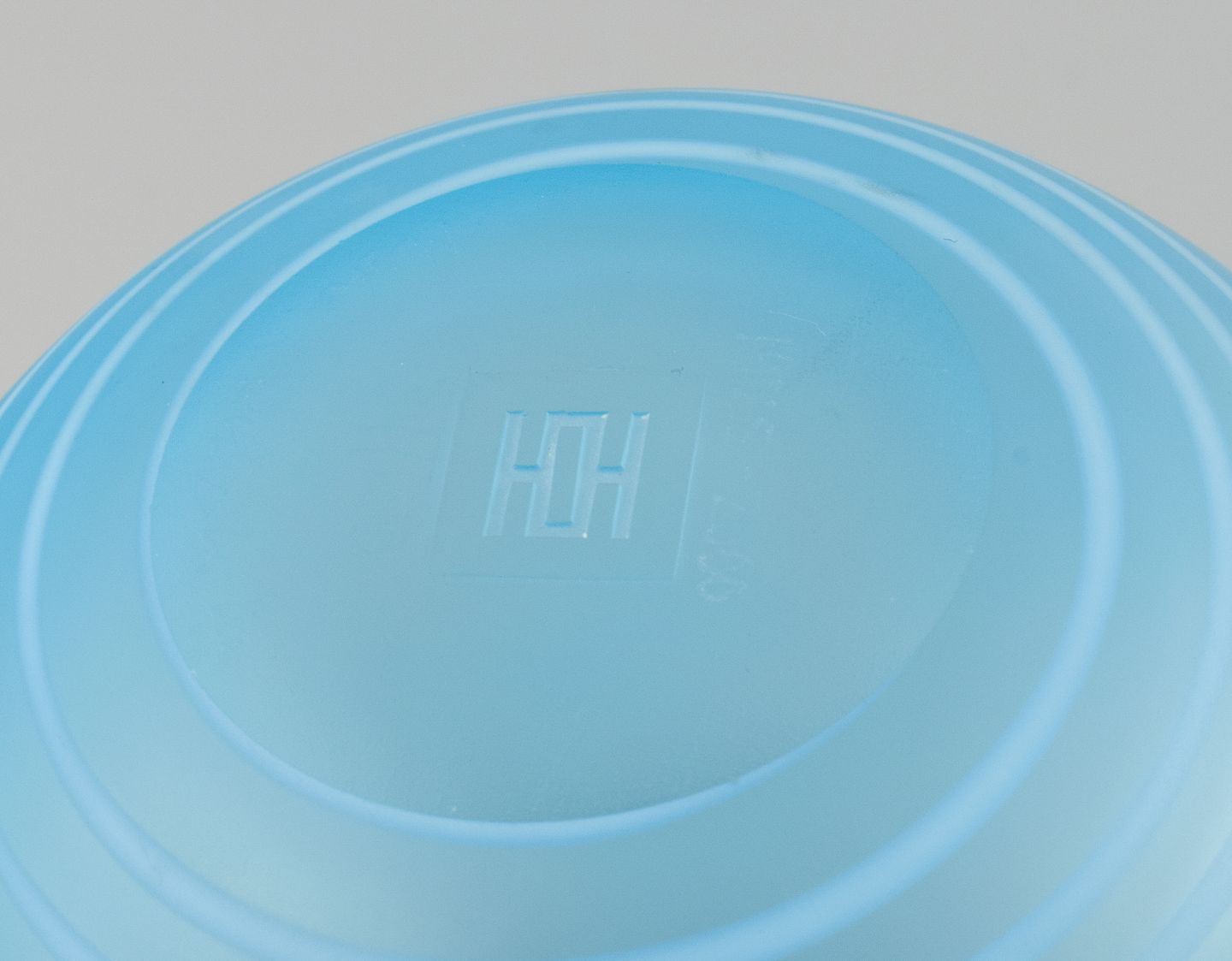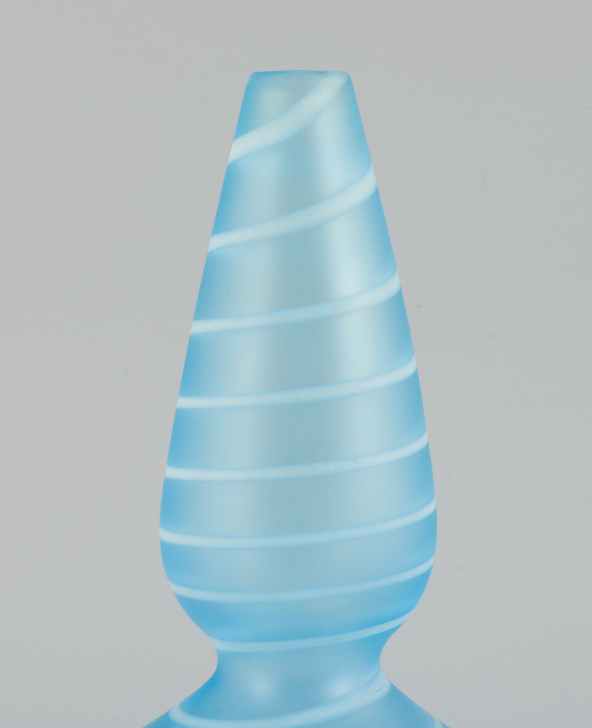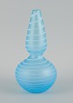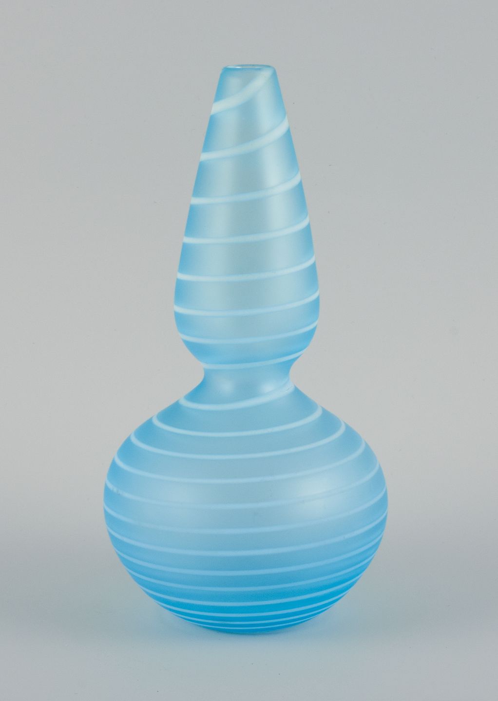 Unika mundblæst kunstglasvase i lyseblå med hvide striber.