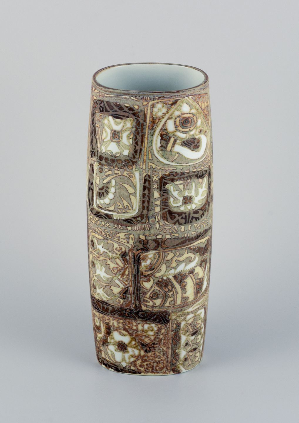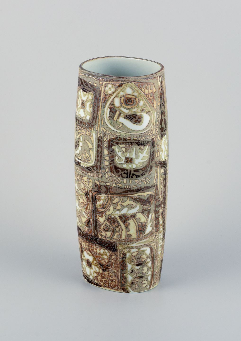 Nils Thorssen for Royal Copenhagen, stor oval Baca-vase i fajance. 1970´erne. Model 719-3116. Første sortering. I flot stand. Stemplet. Mål: H 28,7 x D 12,0 cm.