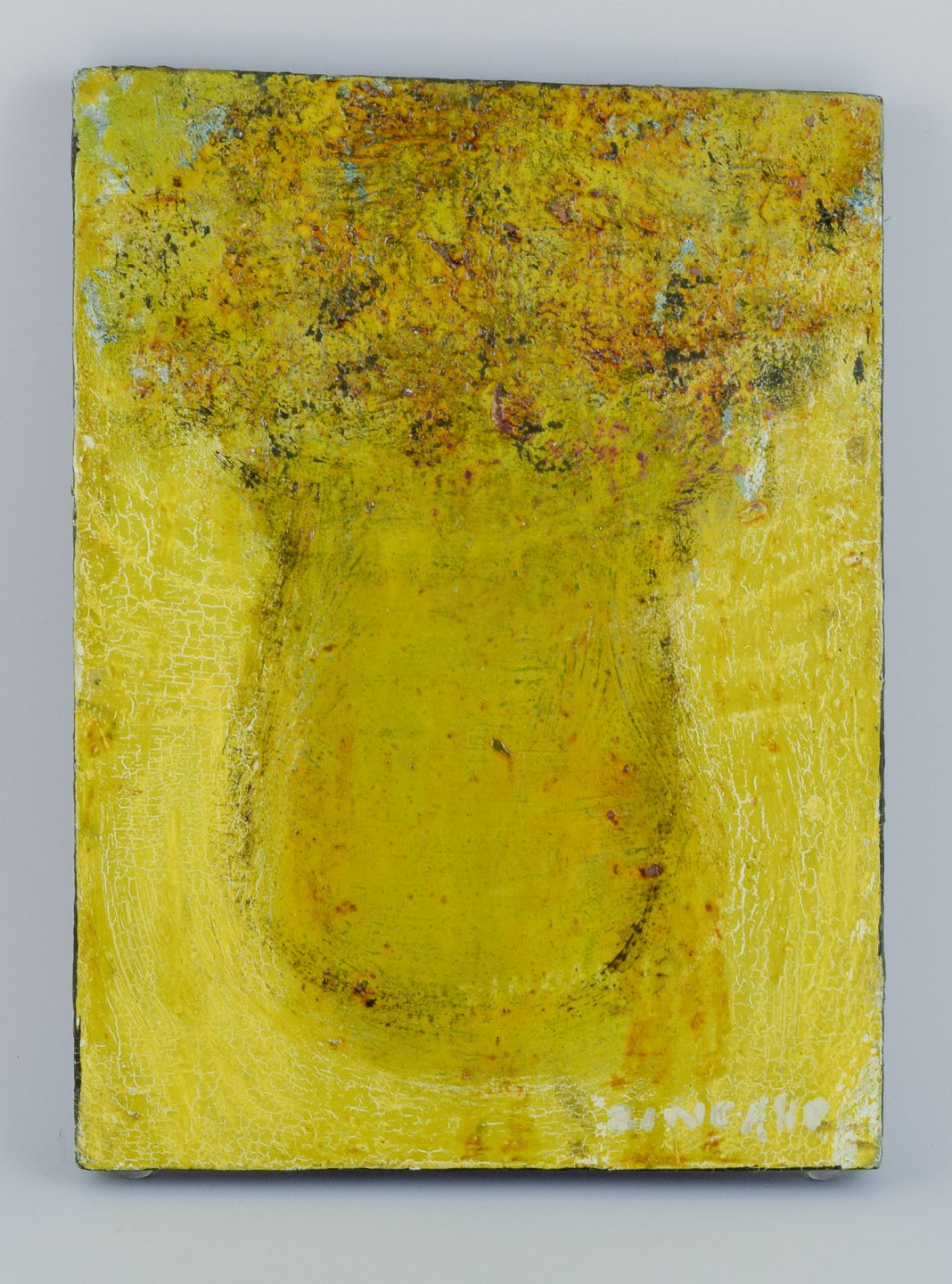 Zingard, fransk kunstner, ”Fleures” - blomster i vase, abstrakt stil. Olie på træplade. 1995. Signeret. I flot stand. Mål: B 25 x H 34 cm.