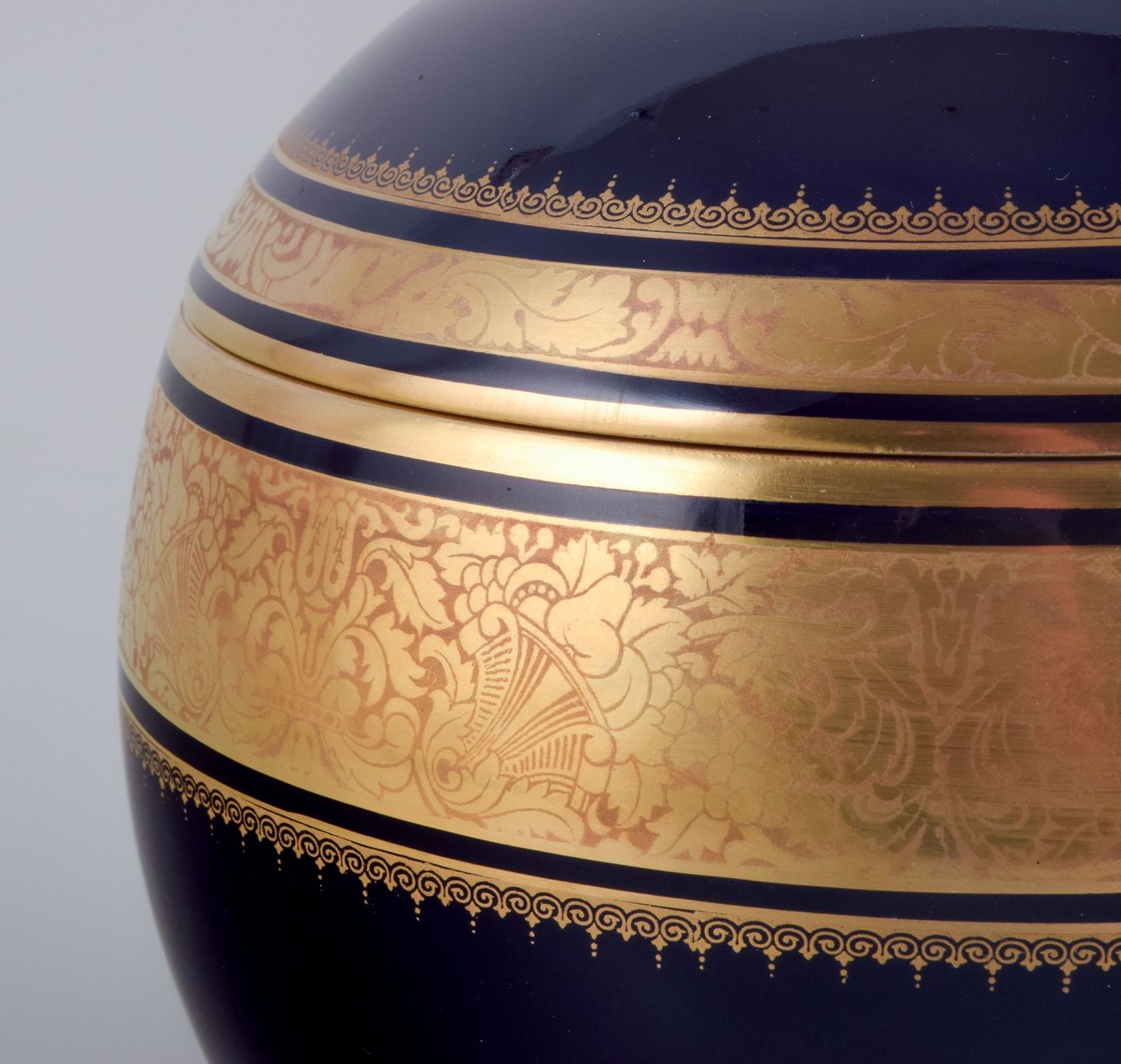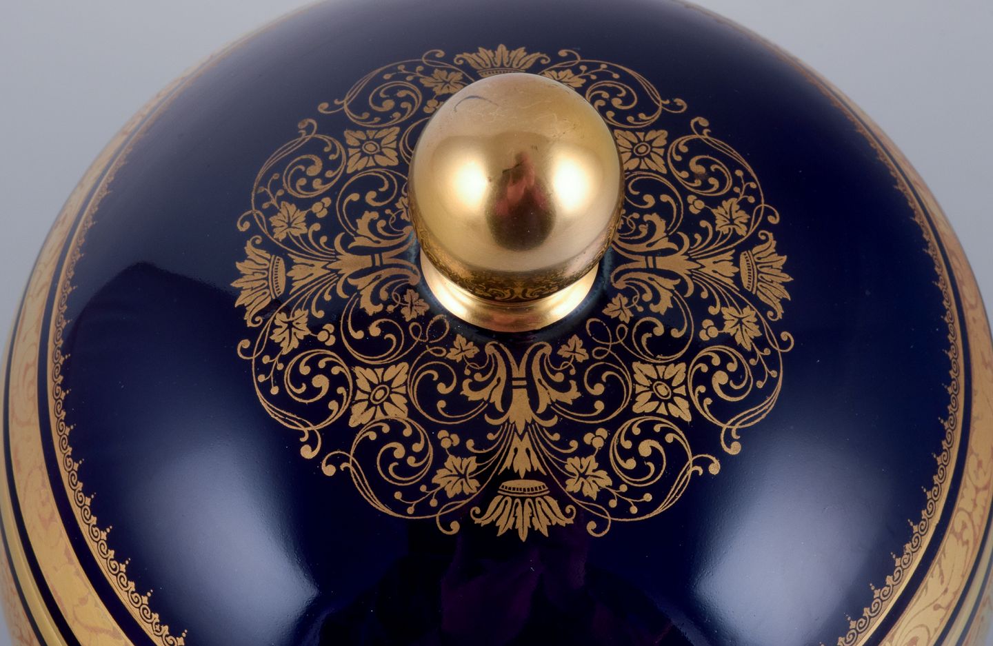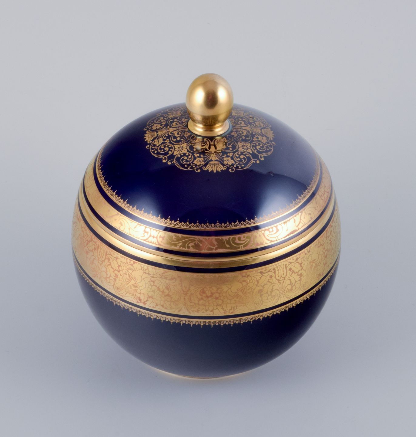 Rosenthal, Tyskland, art deco lågskål i porcelæn dekoreret i kongeblå og guld. Ca. 1940’erne. I perfekt stand. Stemplet. Mål: H 18,0 cm. x D 15,5 cm.