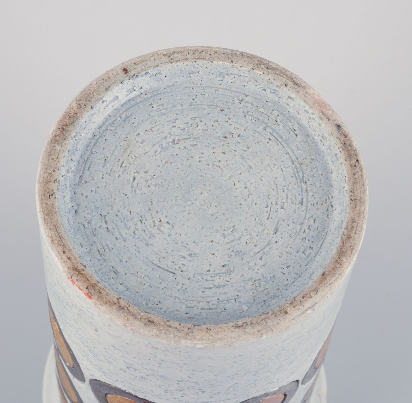 Aldo Londi for Betossi, Italien, stor ”Ikano” keramikvase i retrostil. Grå glasur. Designet med cirkler dekoreret i sølv og guld.