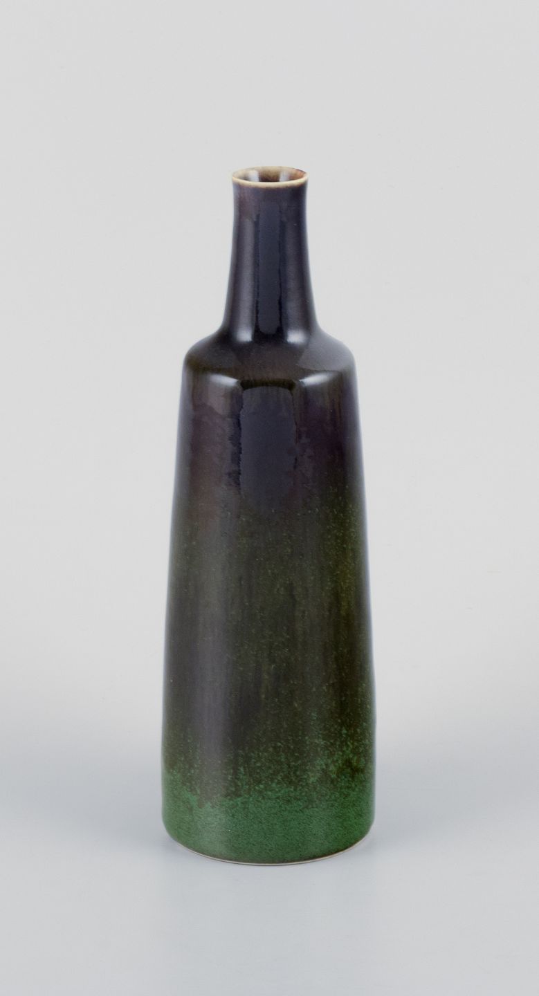 Carl Harry Stålhane for Rörstrand, flaskeformet keramikvase dekoreret i grønne nuancer. Perfekt stand. Anden sortering. Stemplet. Mål: H 22,5 cm. x D 7,5 cm.