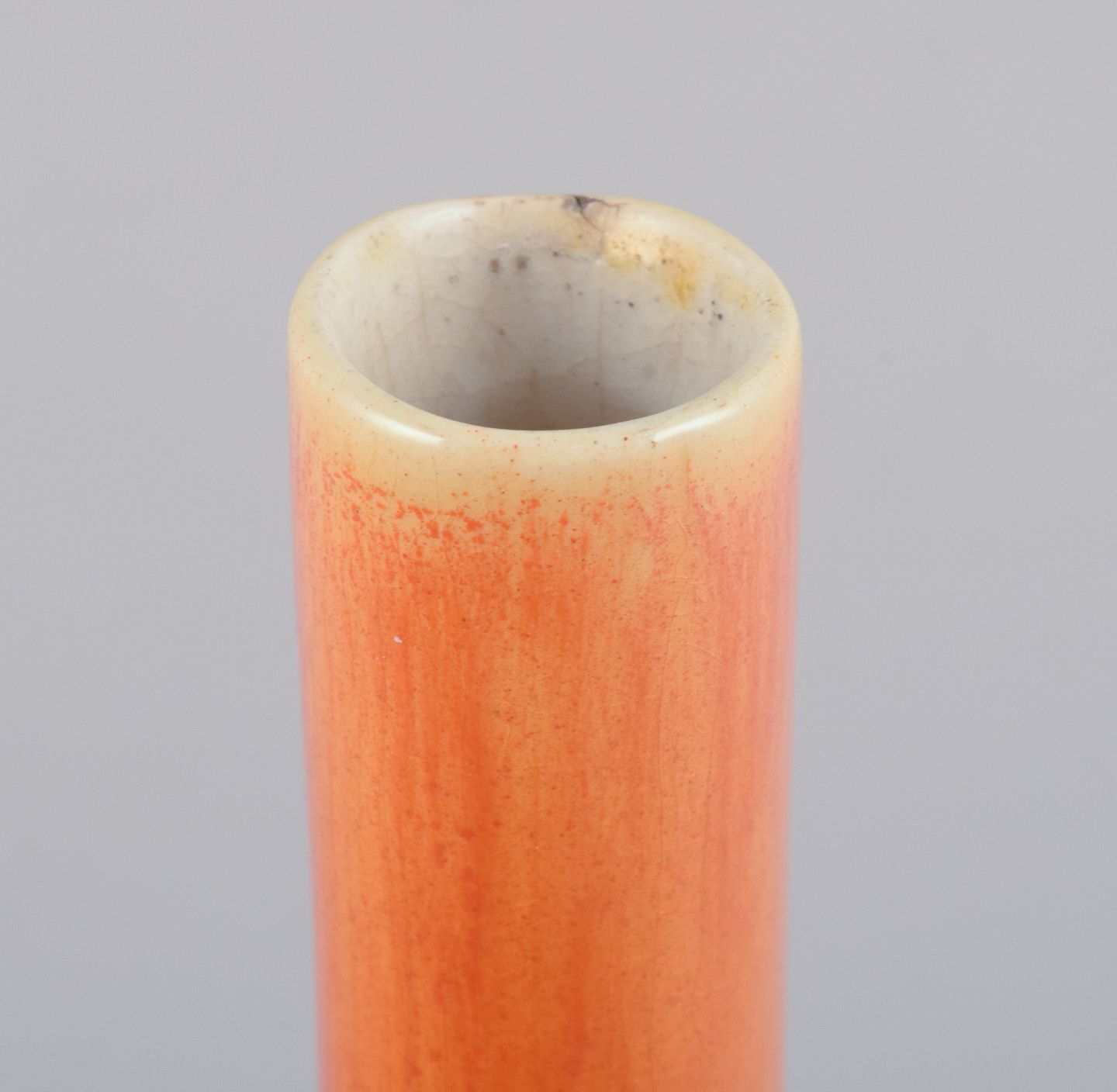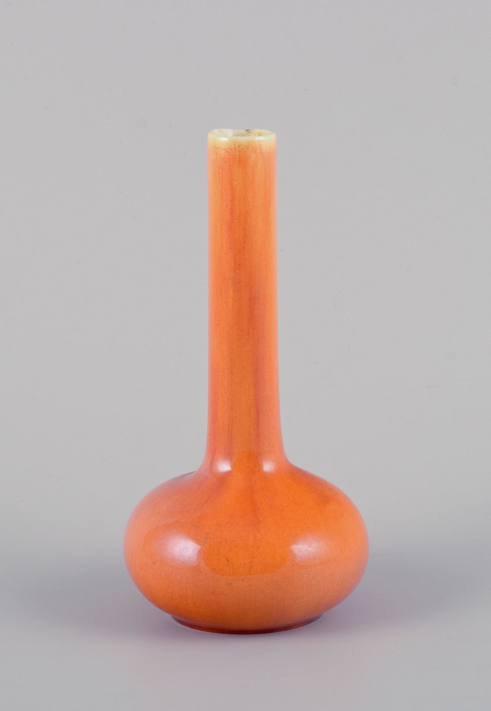 Rörstrand, Sverige, smalhalset fajancevase i urangul glasur.