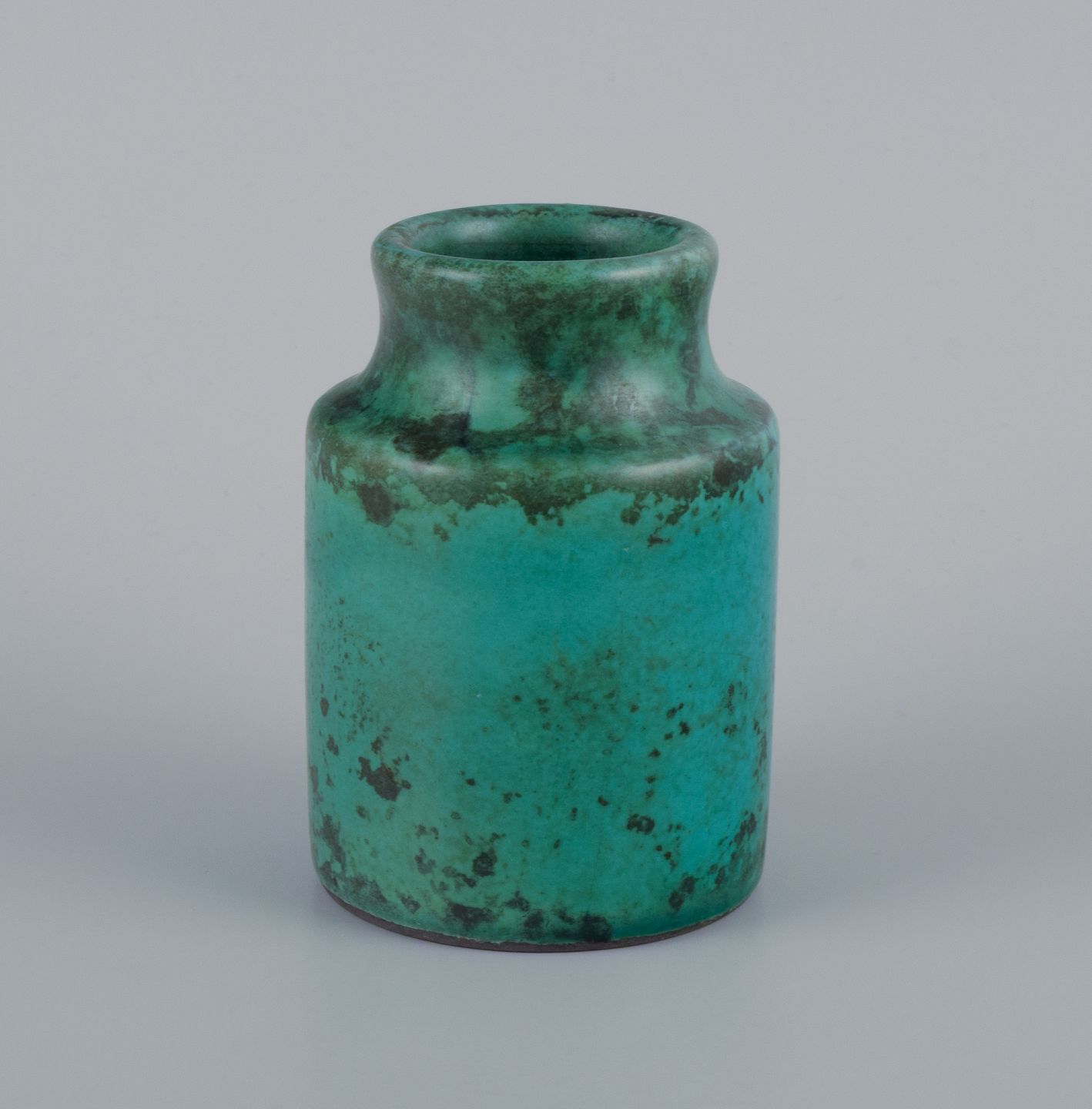 Hans Hedberg for Biot, Frankrig, unika keramikvase med spættet glasur i grønne nuancer. Ca. 1980. Signeret. I flot stand. Mål: H 11,4 cm. x D 8,0 cm.