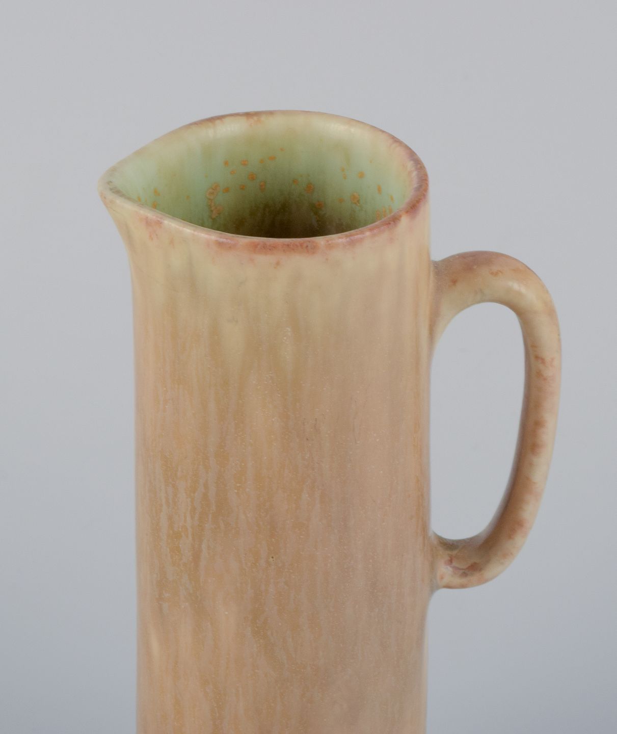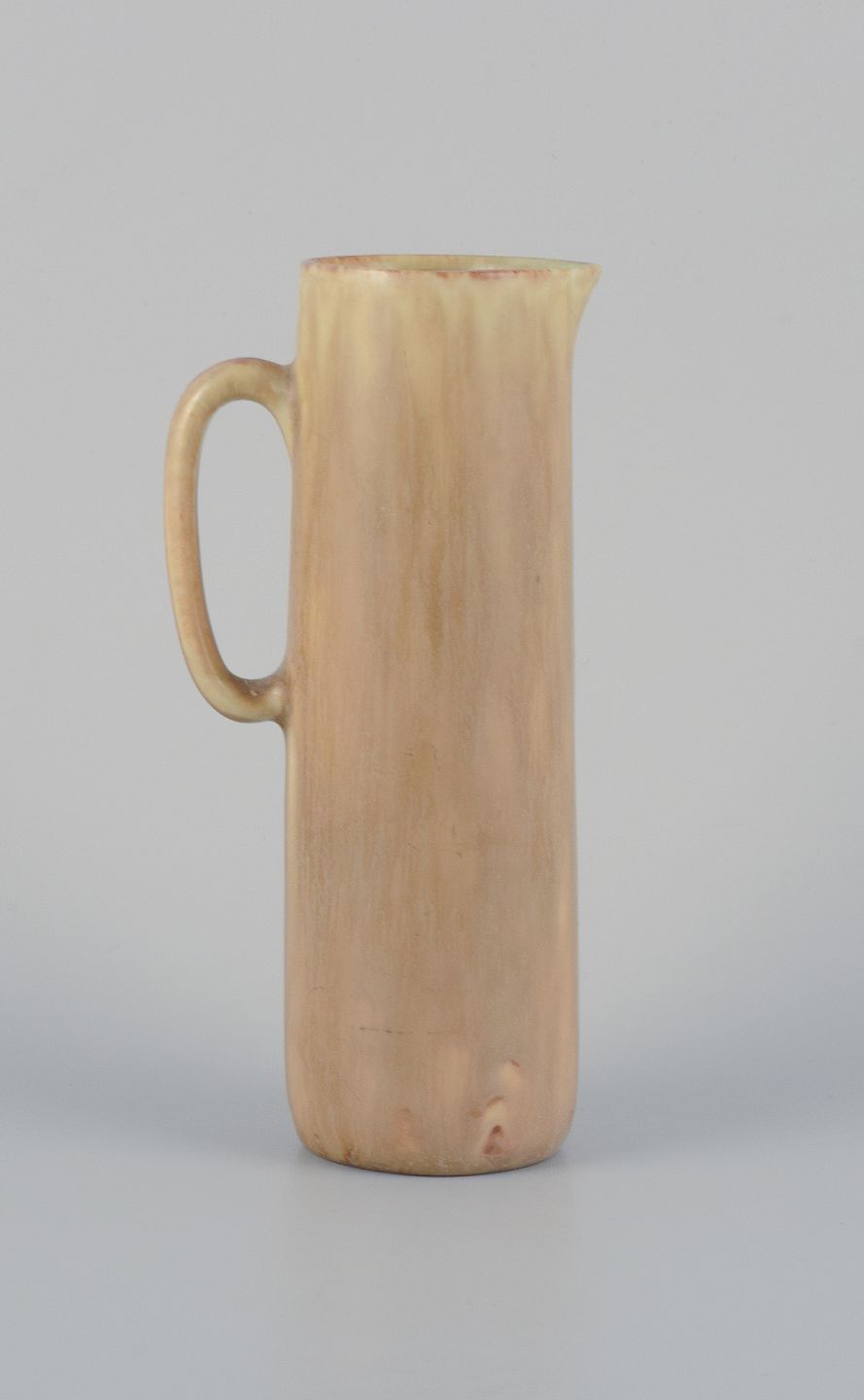 Carl Harry Stålhane for Rörstrand, kande med sandfarvet glasur. Midt 1900-tallet. Stemplet. Perfekt stand. Første sortering. Mål: H 16,4 cm. x D 7,5 cm. inklusive hank.