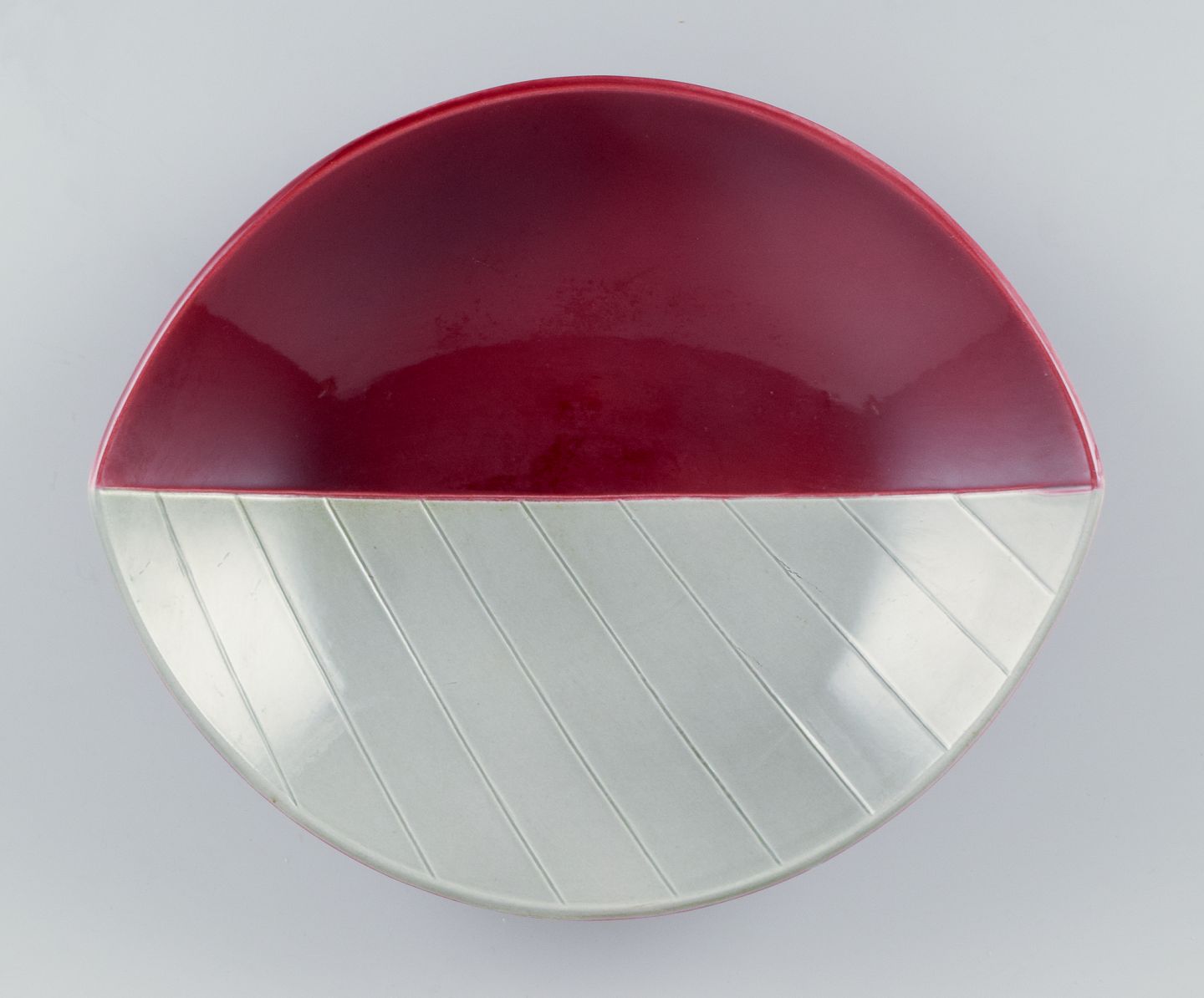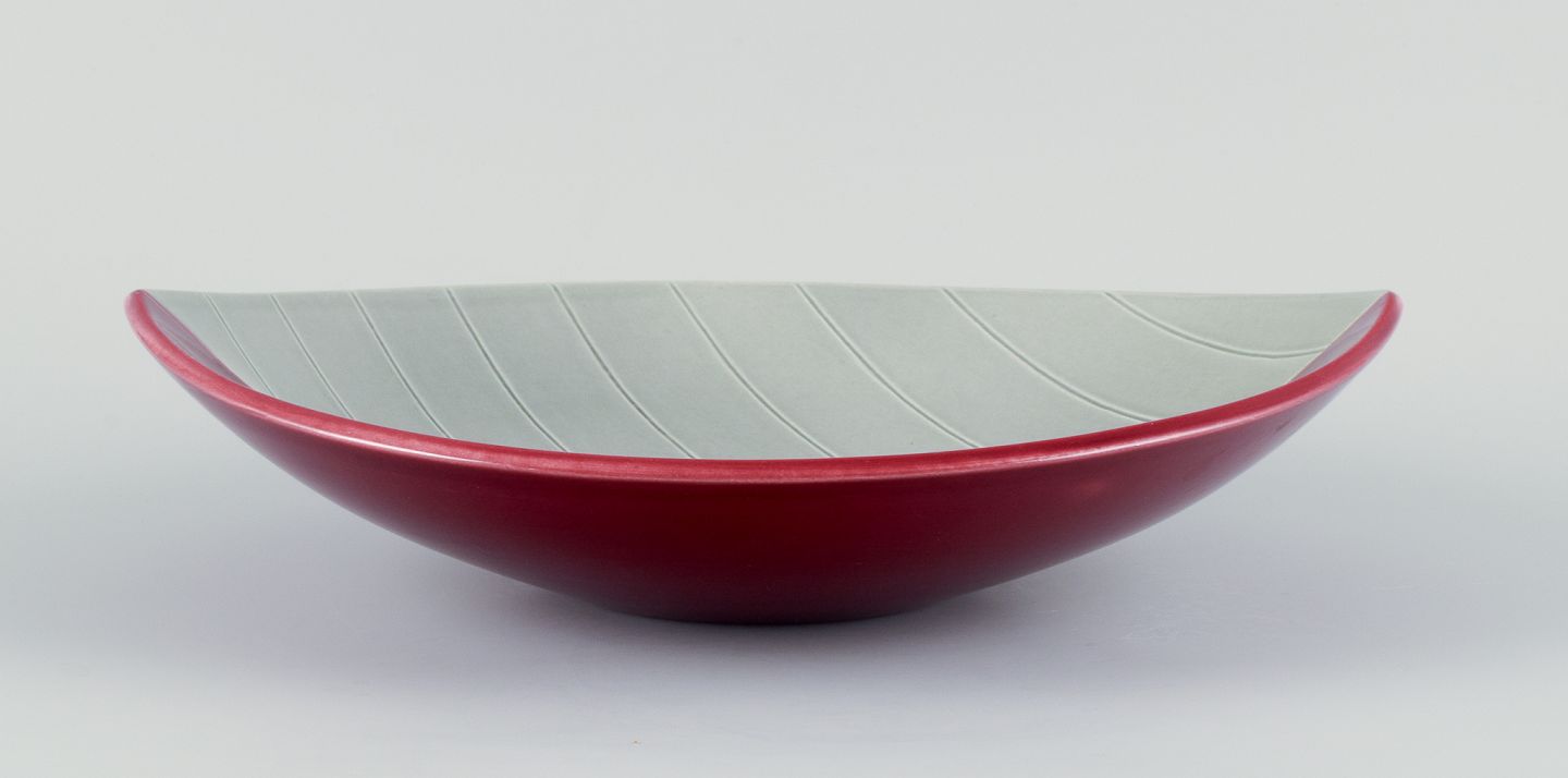 Carl Harry Stålhane for Rörstrand, Sverige, en stor ”California” skål i keramik med violet og grå glasur. Stilrent design.