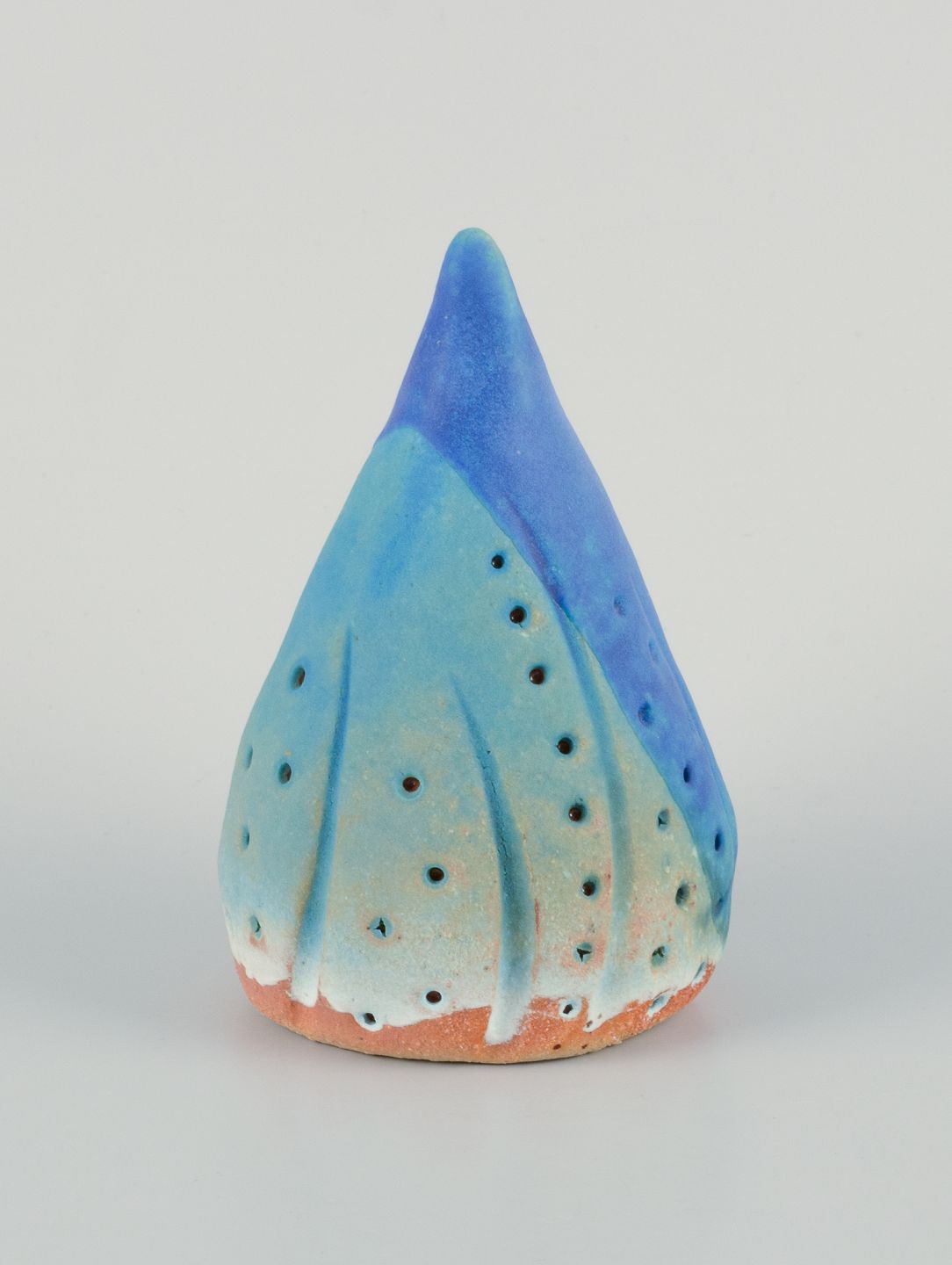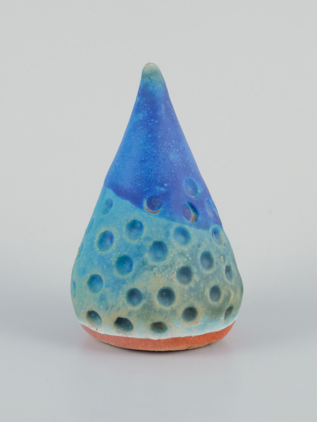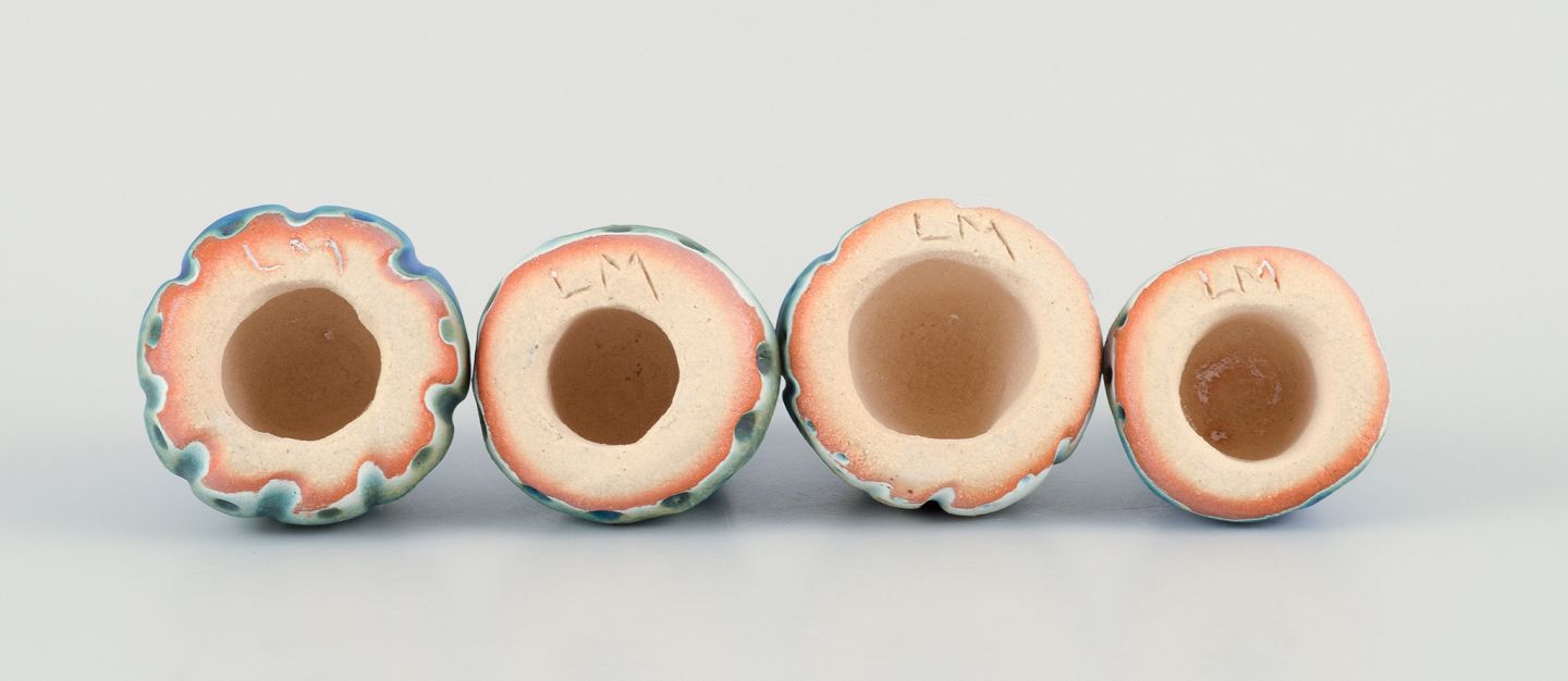 Linda Mathison, svensk samtidskeramiker, fire små unika-keramikskulpturer i turkis glasur. Sent 1900-tallet. Perfekt stand. Signeret. Højeste: H 11,5 cm. x D 7,3 cm.