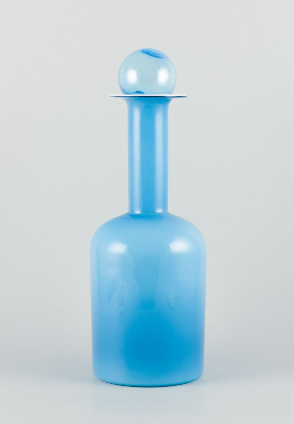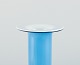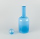 Otto Brauer for Holmegaard. Vase/flaske i turkis mundblæst kunstglas med lyseblå kugle.