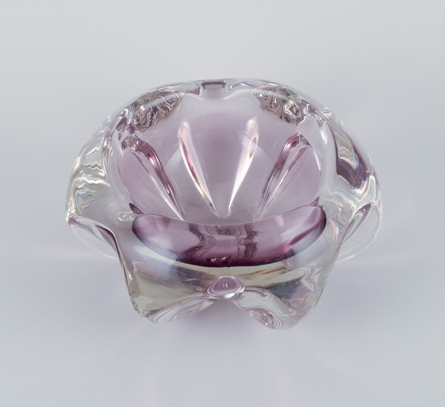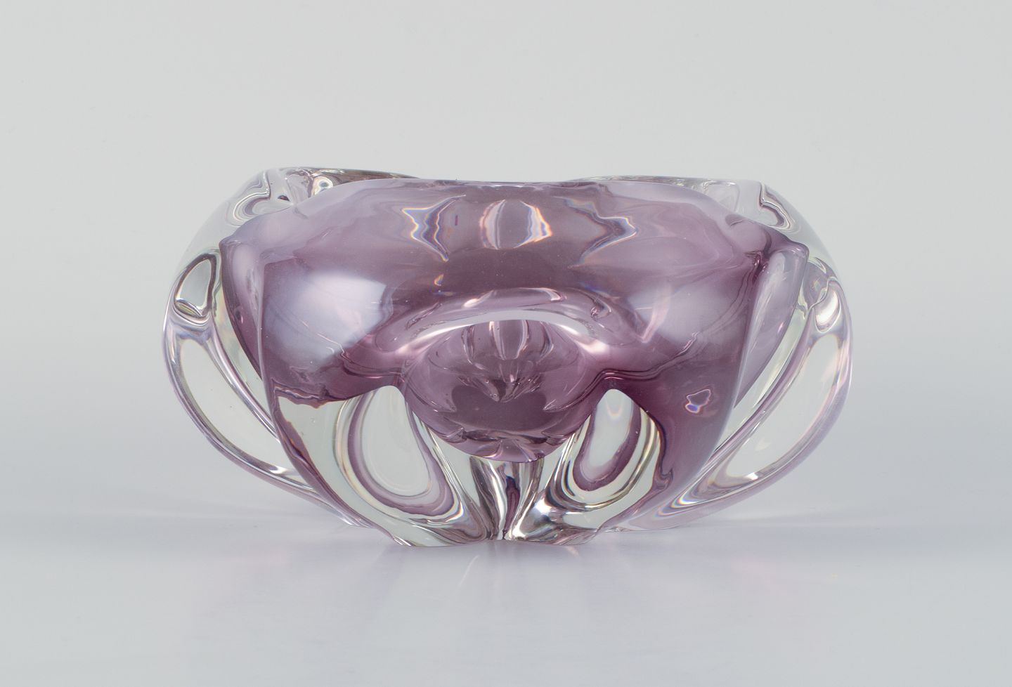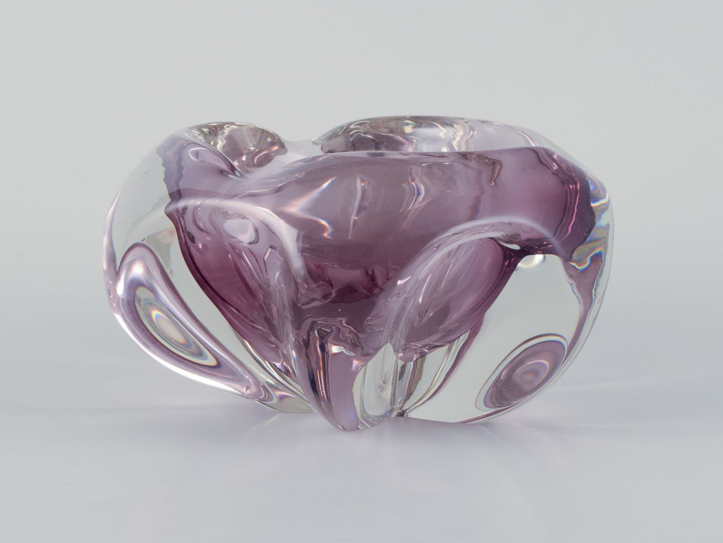 Murano, kunstglasskål i lilla glas. Modernistisk design.