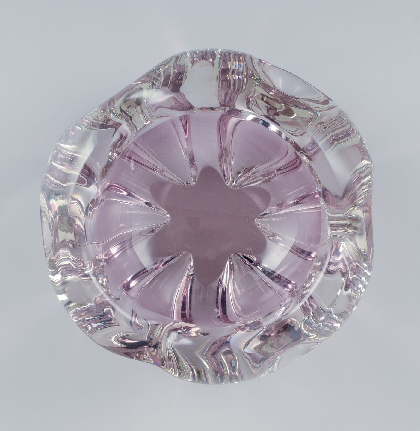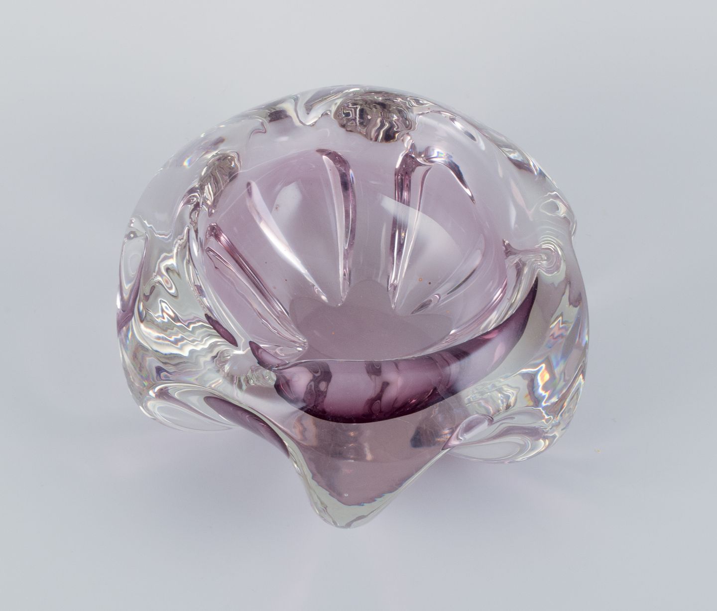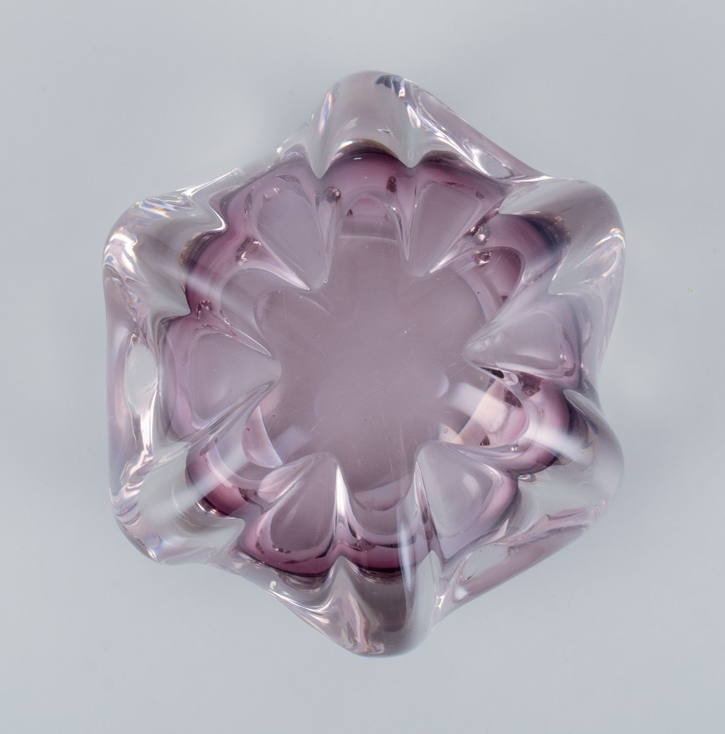 Murano, kunstglasskål i lilla glas. Modernistisk design.