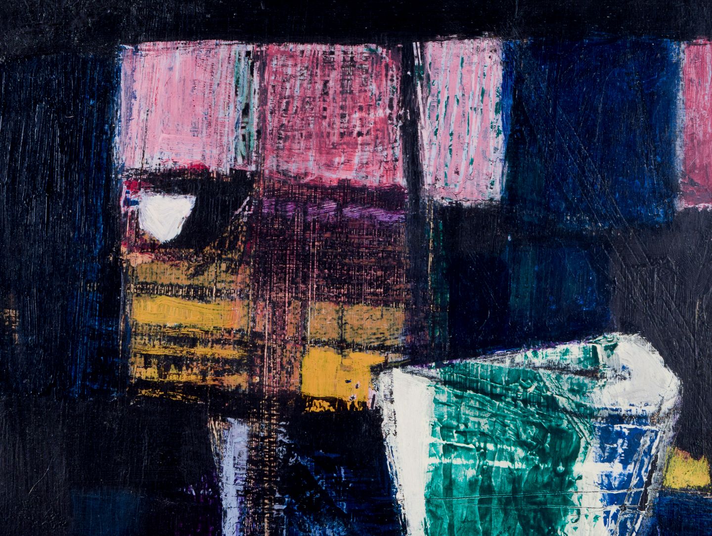 Skandinavisk kunstner, olie på plade, abstrakt komposition.