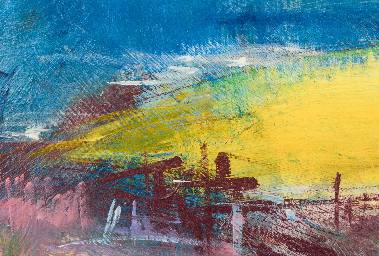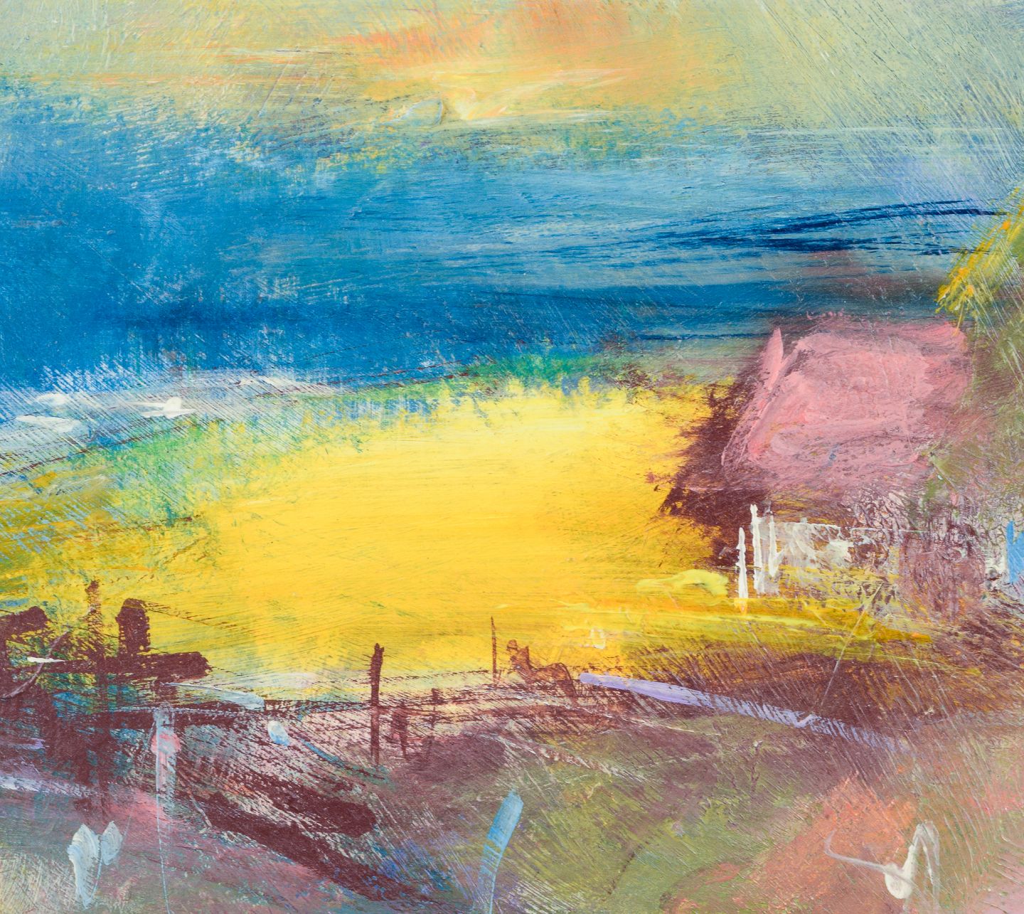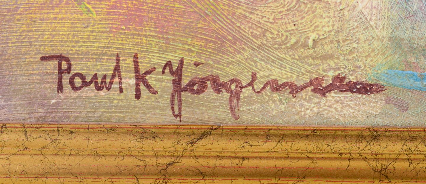 Poul K. Jörgensen, svensk kunstner, olie på plade. ”Landskap m. raps”. Modernistisk landskab. 2006. Perfekt stand. Mål: 40,6 cm. x 36,4 cm. Total: 47,5 cm. x 43,5 cm.