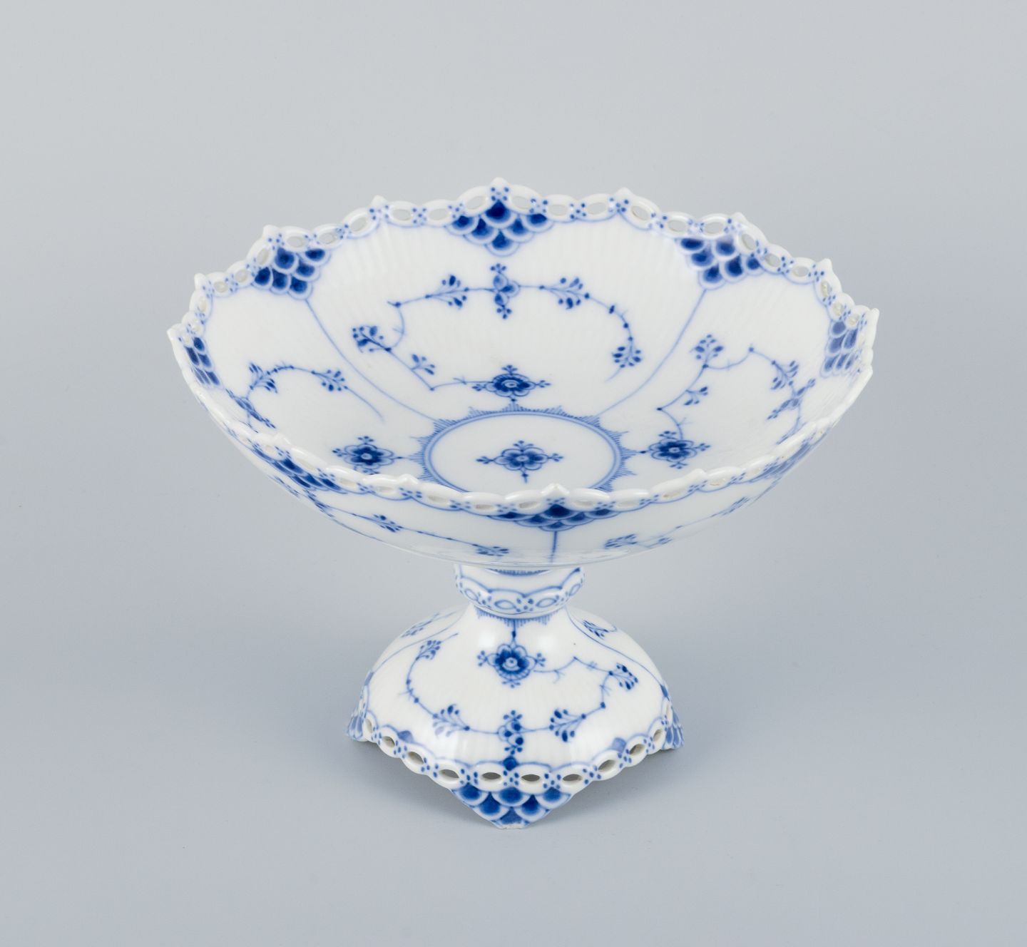 Royal Copenhagen, Musselmalet Helblonde, stor opsats. Modelnummer 1/1020 - 1/1021 Første sortering. Stemplet. I god stand med små afslag i bunden (se foto). Ca. 1930. Mål: H 16,0 cm. x D 20.0 cm.