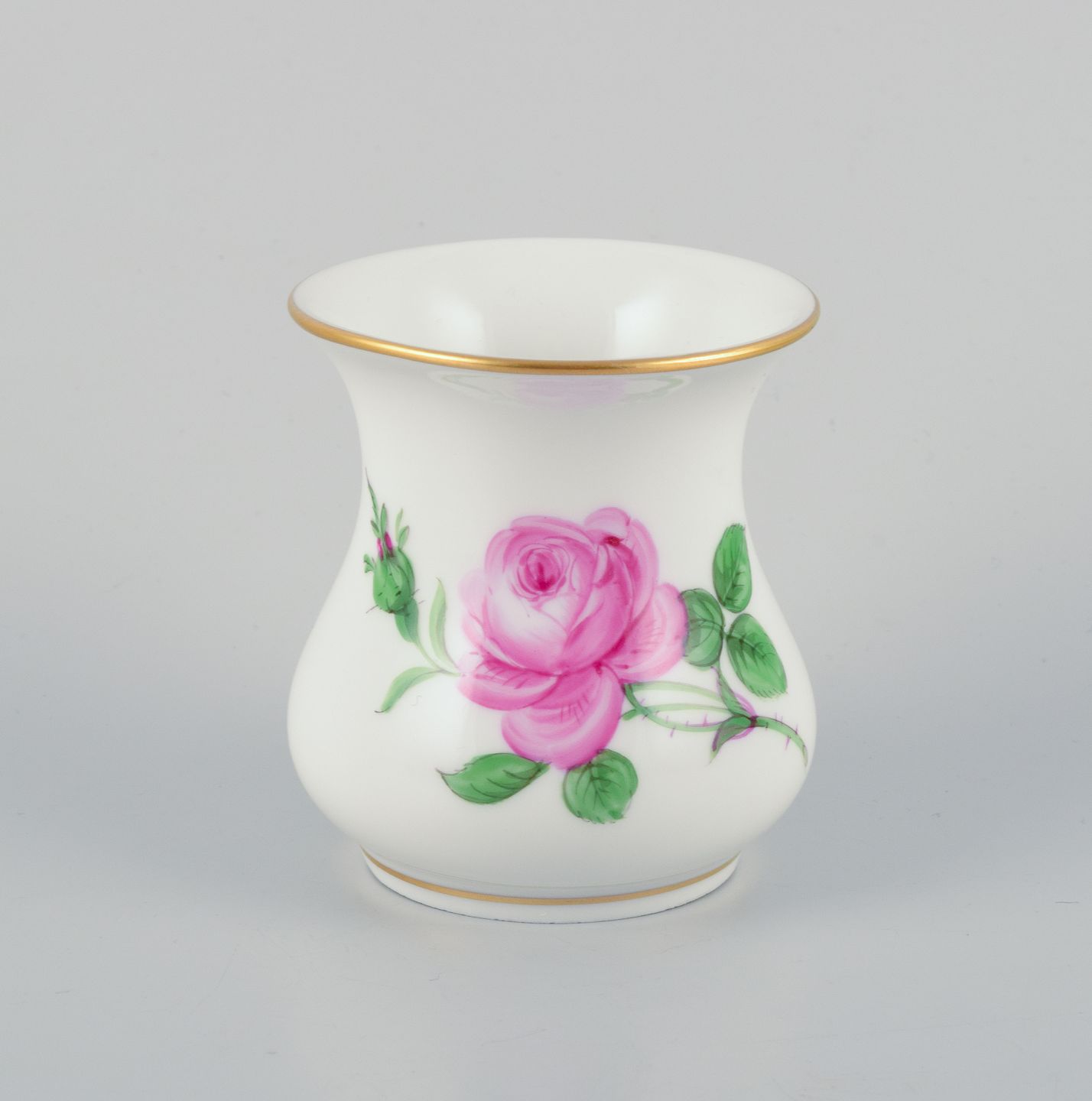 Meissen, to små ”Pink Rose” porcelænsvaser håndmalet med lyserøde roser. Ca. 1930/40’erne. I perfekt stand. En i første sortering og en i tredje sortering. Stemplet. Mål: H 6,5 cm. x D 5,5 cm.