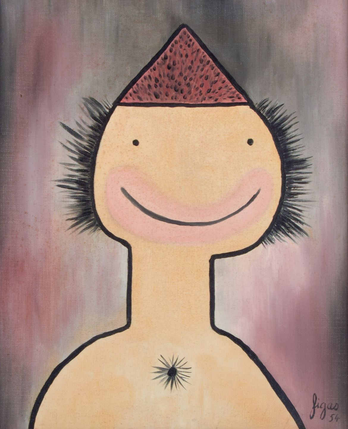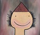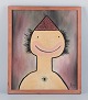 Fransk kunstner, olie på lærred. Humoristisk portræt i figurativt naivistisk stil.
