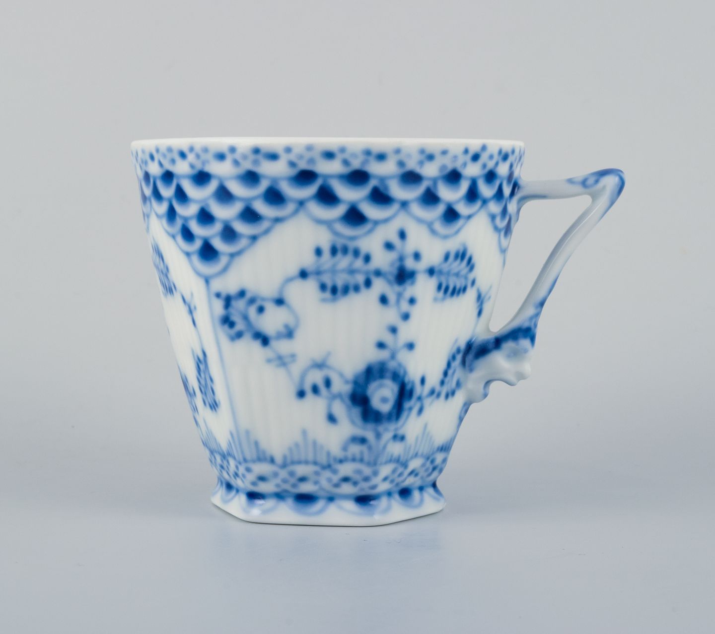 Royal Copenhagen, Musselmalet Helblonde, et par kaffekopper. Hank med ansigt af faun.