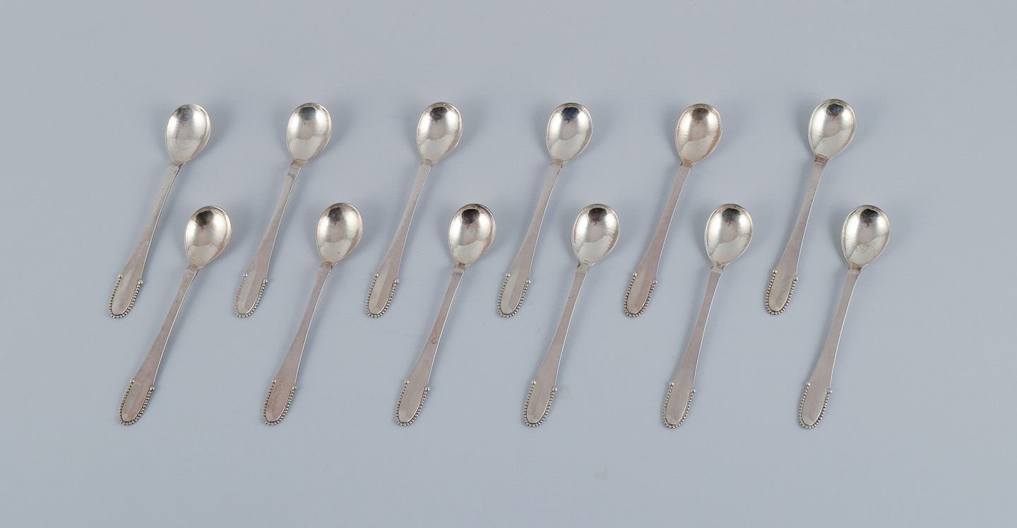 Georg Jensen Kugle. Et sæt på tolv kaffeskeer i sterlingsølv. Efter 1945 stempel. I flot stand. Mål: L 11,3 cm.