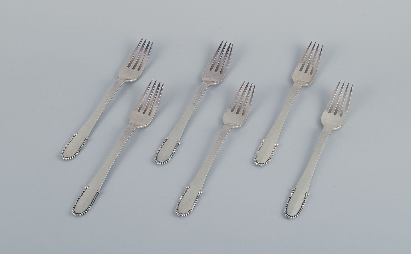 Georg Jensen Beaded. A set of six lunch forks in sterling silver. Marked with 1933-1944 hallmarks. In excellent condition. Measurements: 18.3 cm.