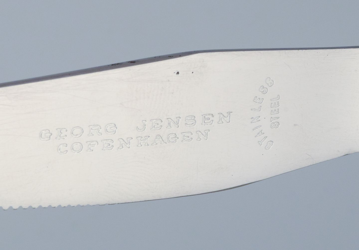 Georg Jensen Pyramide, to kortskaftede frokostknive i sterlingsølv og stål. Knivblade med skær.