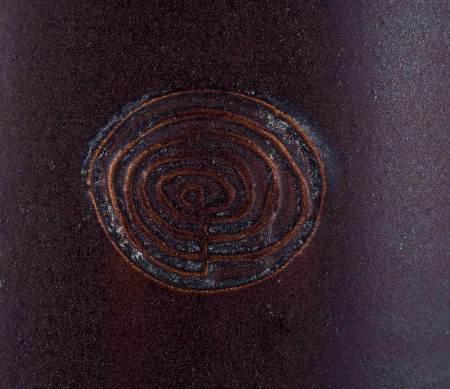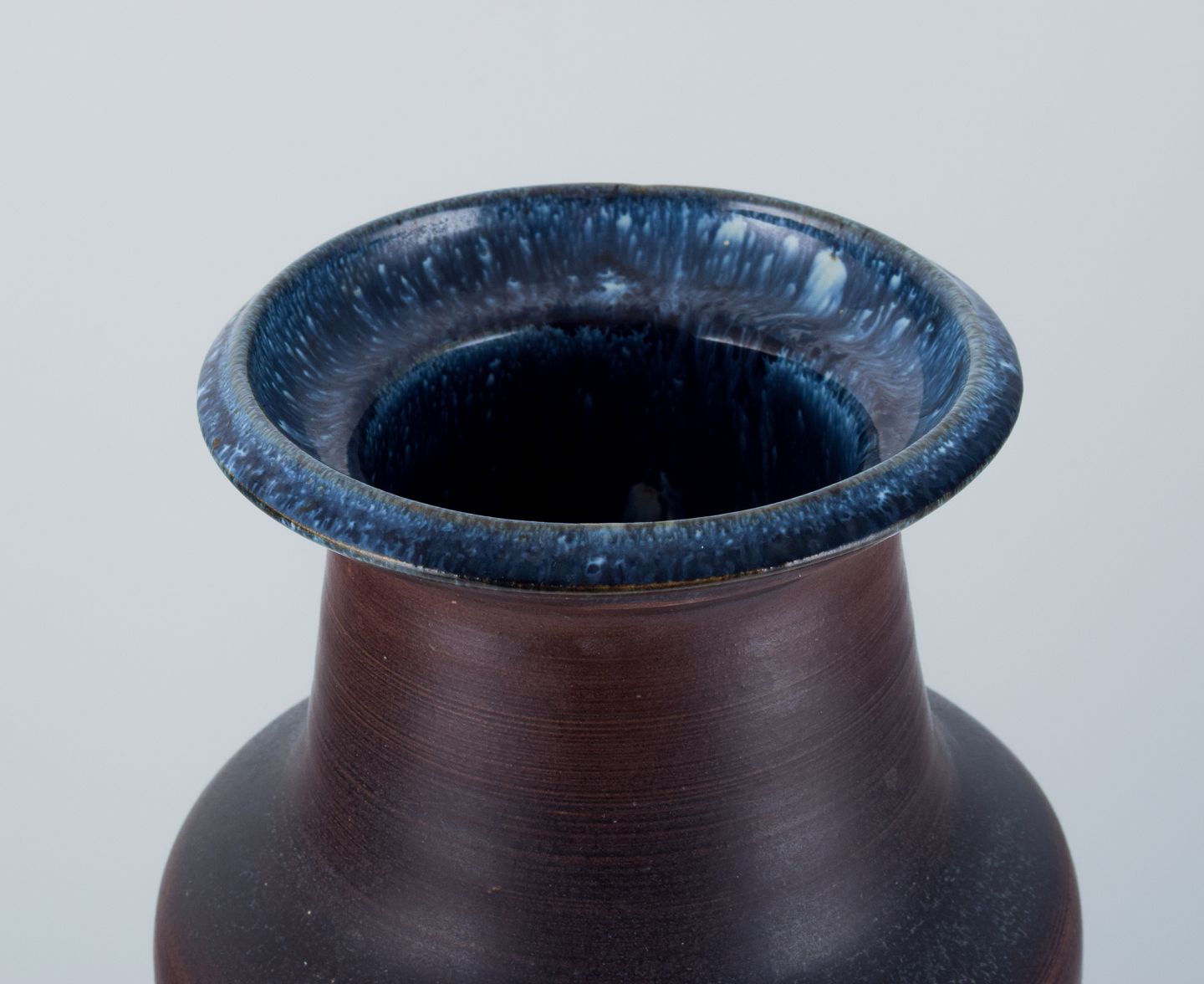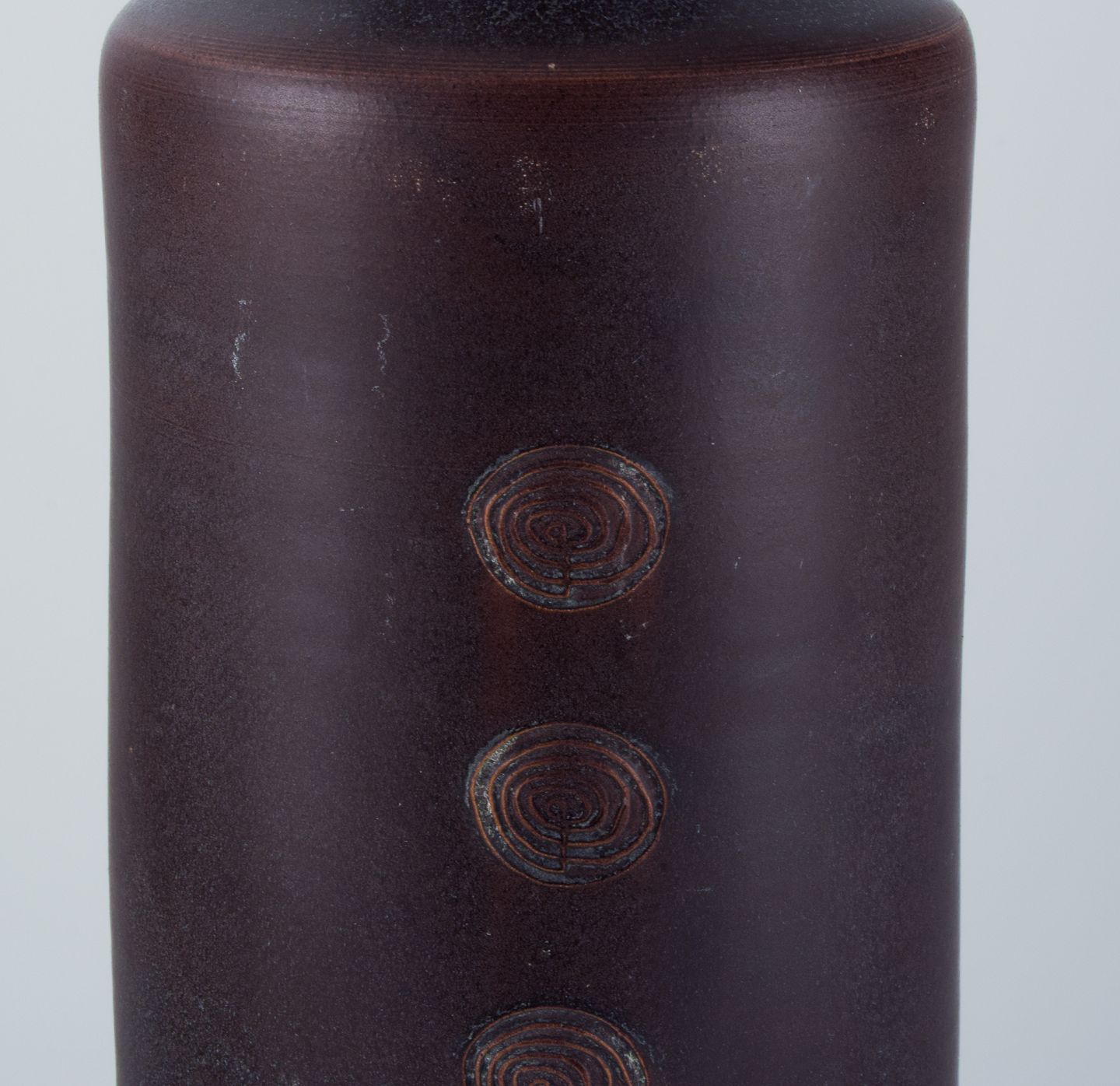 Stor keramik gulvvase i modernistisk stil med indridset ornamentik. Glasur i blåbrune toner.