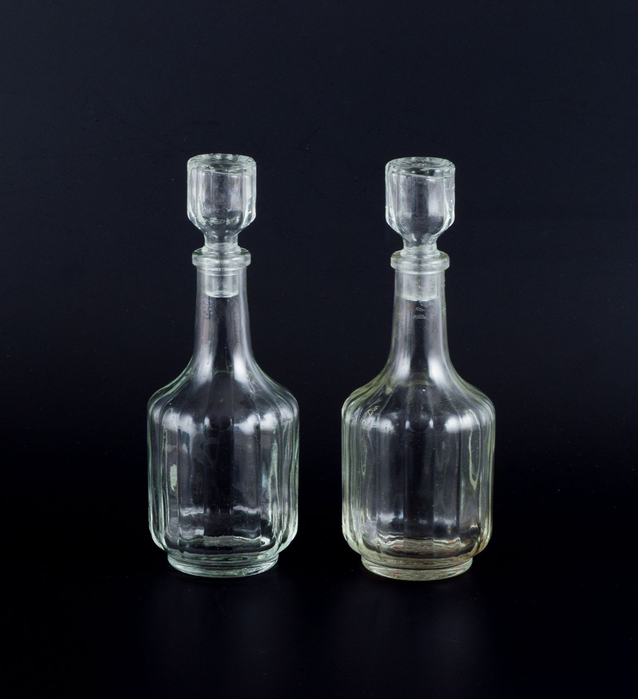 Olie/eddike sæt i klart glas. Dansk design. 1930/40’erne. I flot stand. Stemplet STO Mål: H 16,3 x D 6,0 cm.