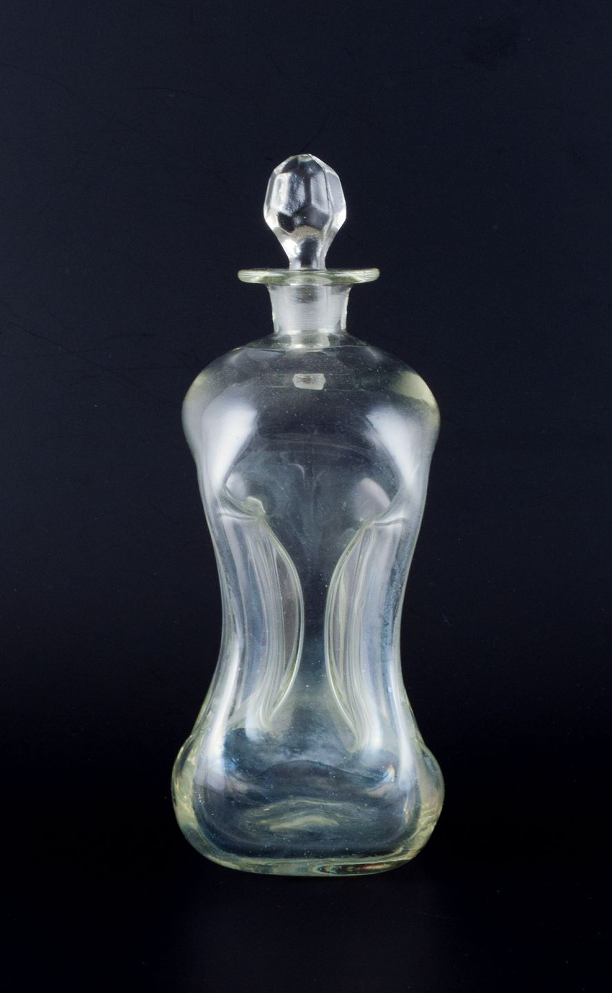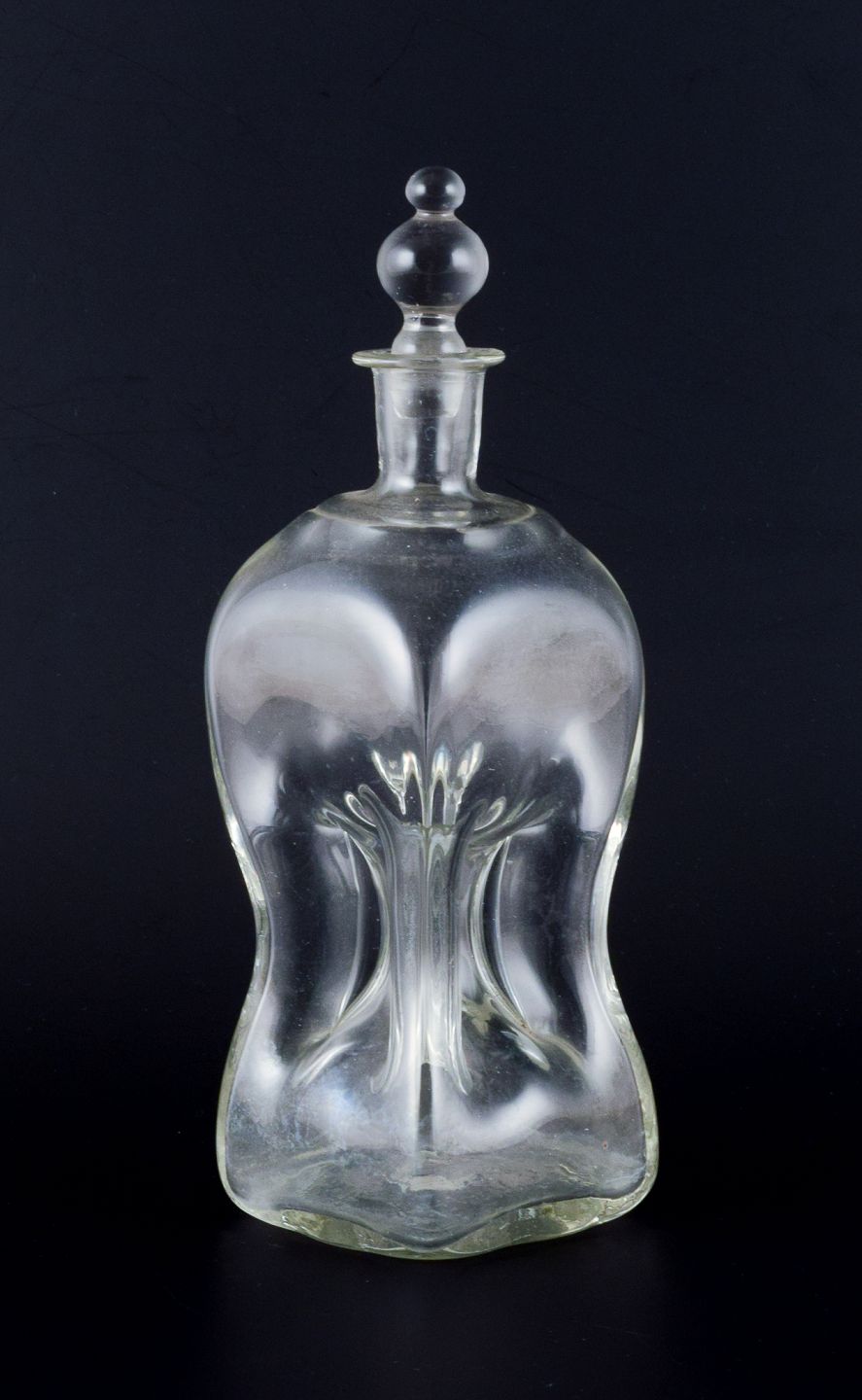 Holmegaard, Danmark. Klukflasker i klart mundblæst glas. 1930/40’erne. I flot stand. Højeste: H 22,5 cm. x D 7,5 cm.